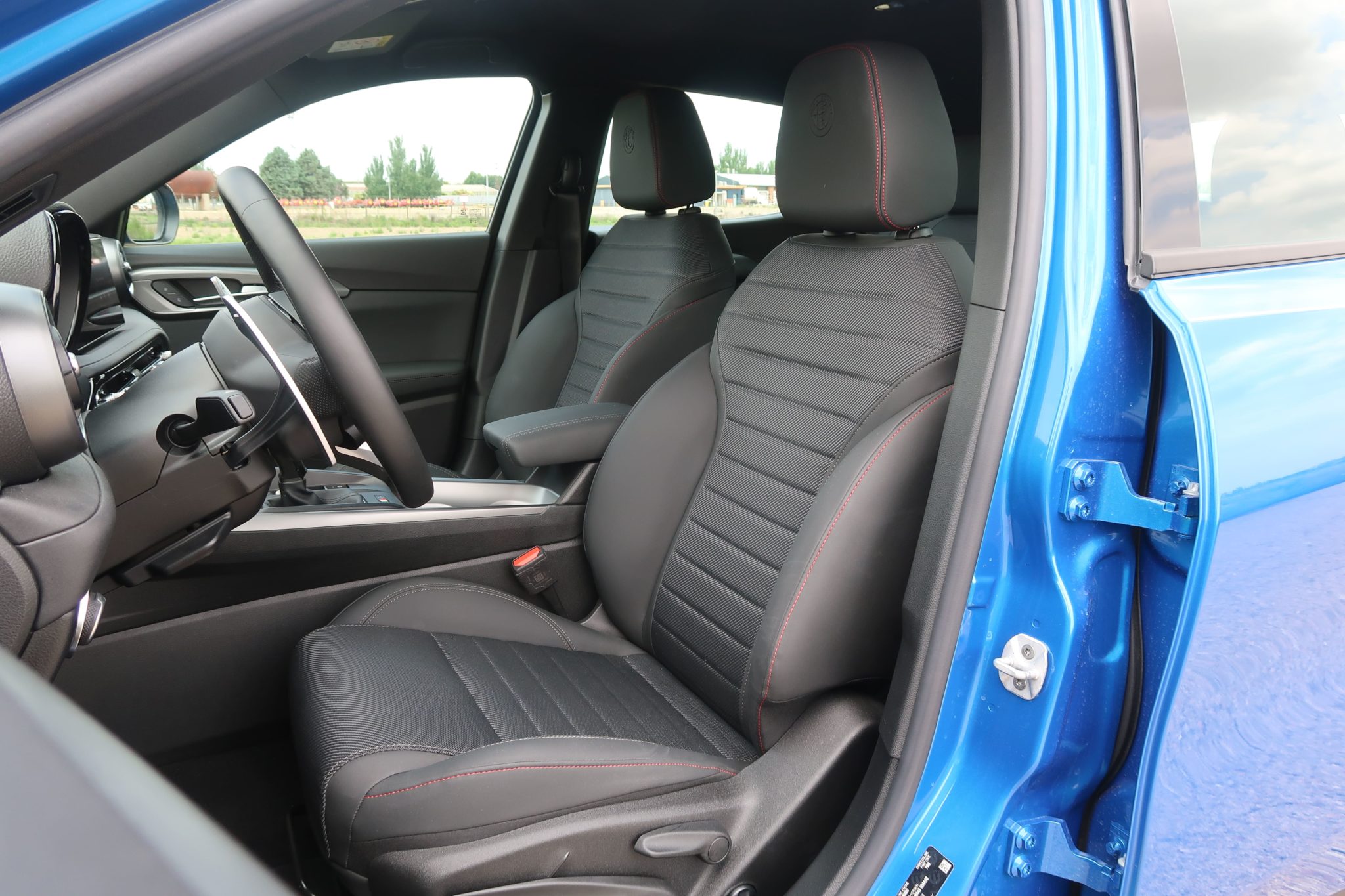 Las plazas delanteras nos reciben con la última tecnología y con unos asientos confortables para realizar viajes. En el salpicadero vemos una pantalla central muy bien situada de 10,25” que nos integra de todo (conectividad plena, mapas con avisos de radares, cámaras 360 grados, parámetros del vehículo y propulsión…) y además tiene una buena fluidez y calidad de gráficos. El climatizador bizona cuenta con botones físicos que mejoran la ergonomía para no distraer mucho la vista de la carretera. La consola central separa muy bien el puesto de conducción del puesto del acompañante, y aquí encontramos un cofre central con un apoyabrazos, posavasos, la caja de cambios, carga por inducción para móviles y la ruleta para cambiar los modos de conducción.
