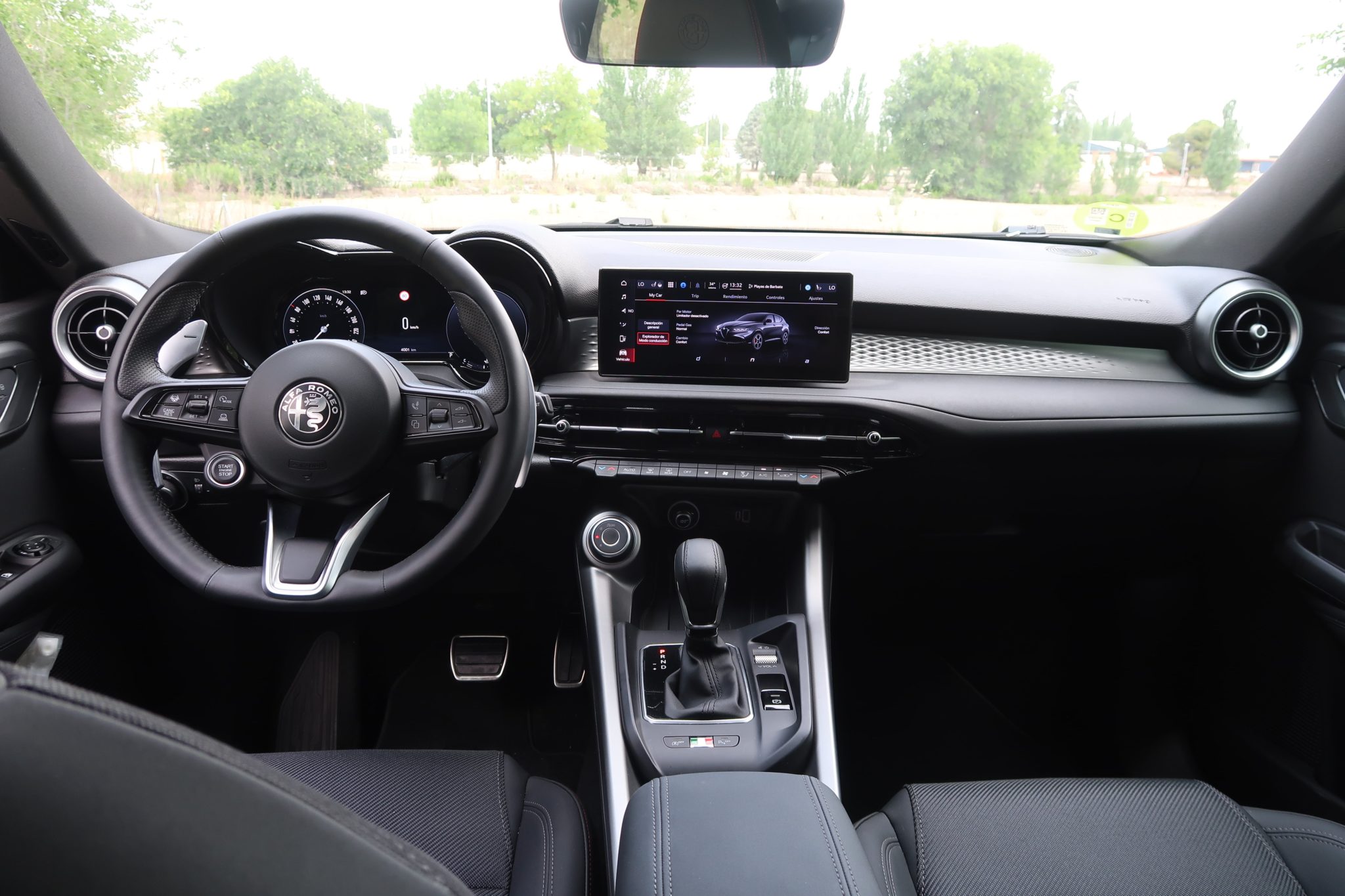 Dinámicamente es un Alfa y se nota, sobre todo en su dirección que es muy directa aunque con un radio de giro algo corto. La suspensión es muy cómoda para el día a día y viajes, aunque para nuestro gusto algo blanda, haciendo que transmita un poco de balanceo a la carrocería. Entendemos que como estamos probando una versión básica, tenemos esta suspensión y en los acabados más altos con la suspensión adaptativa el coche va más aplomado y se mejorará el paso por curva.