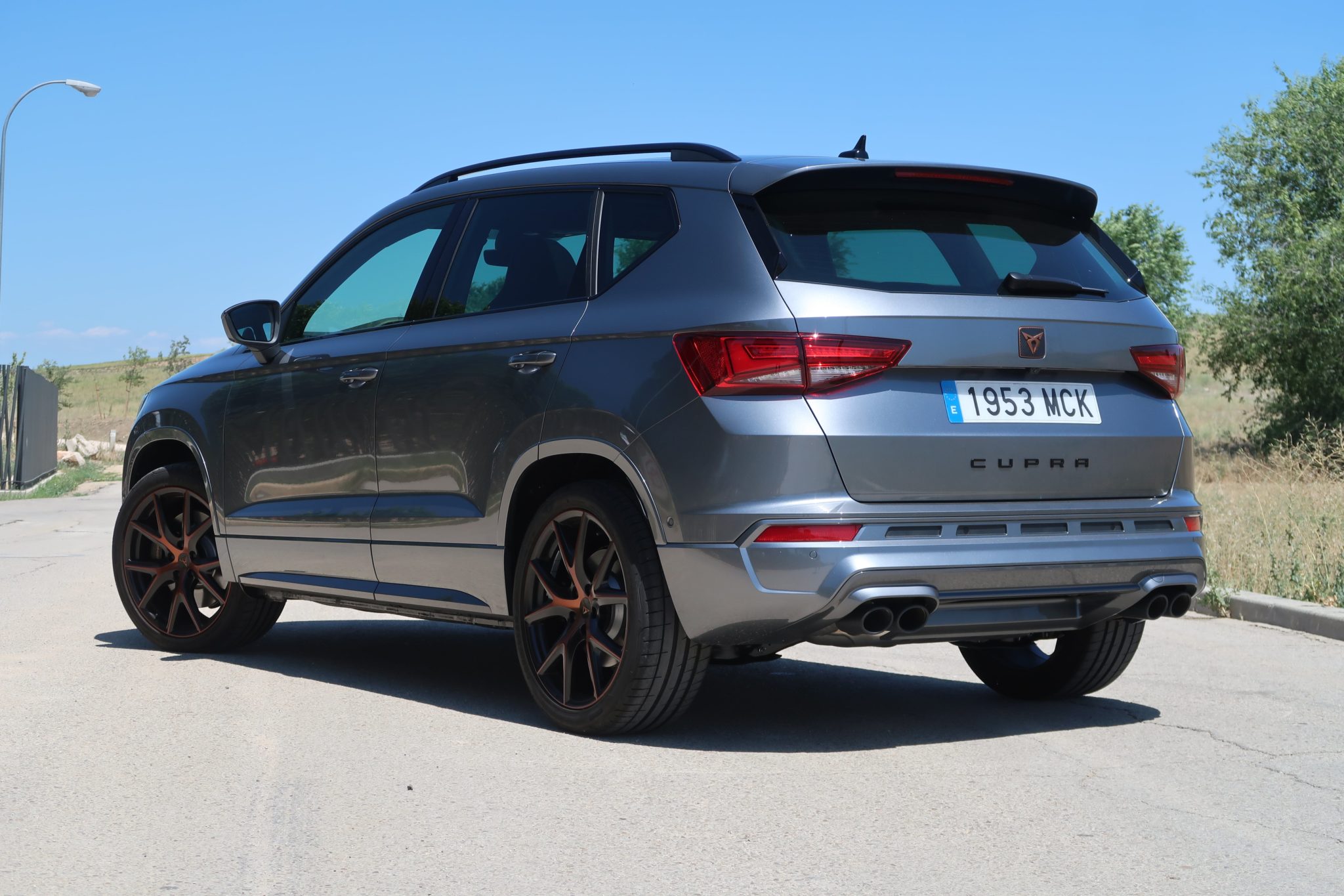 El CUPRA Ateca siempre ha sido un modelo que ofrecía una única propulsión de gasolina con 300cv, tracción 4Drive y cambio automático DSG7, que por cierto es el que vamos a probar hoy, pero hace bien poquito ha lanzado una versión de 190cv y próximamente llegarán versiones con 150cv para un público que no busque tanta potencia. El bloque de gasolina tanto para la versión de 190cv y 300cv es el archiconocido 2.0 TSI, sin ningún tipo de electrificación, por lo cuentan con etiqueta C y esa tracción 4Drive y el cambio automático de doble embrague. Esta versión de 300cv es la más radical y saca a relucir dos salidas de escape dobles a cada lado con un sonido precioso, al cual además se pueden escoger firmadas por Akrapovic por 3.850€ extra.