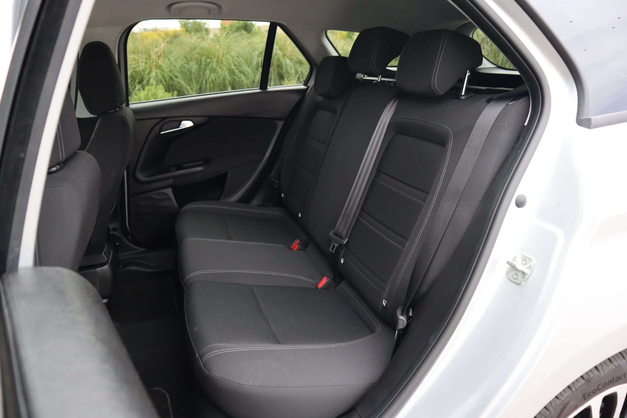 El interior mantiene la misma estructura, pero encontramos nuevos elementos, como la pantalla del sistema multimedia, de 10,25” con una excelente fluidez e interfaz, conectividad inalámbrica para Apple y reglajes del vehículo. El clima se mantiene con mandos físicos, algo que agradecemos. Detrás del volante encontramos un cuadro de instrumentos con una pantalla central con bastante información referente al vehículo, consumos y viaje, autonomía, multimedia… Lo único que no nos ha gustado es que el marcador de las revoluciones no es muy exacto porque cada rango de 1000rpm está dividido en dos mitades, y por ello no podremos saber a qué revolución exacta vamos. Los asientos integran un diseño específico en este acabado Cross, en tono gris y con reglajes manuales excepto el lumbar, que es eléctrico. Son muy confortables, y el agarre lateral es correcto.