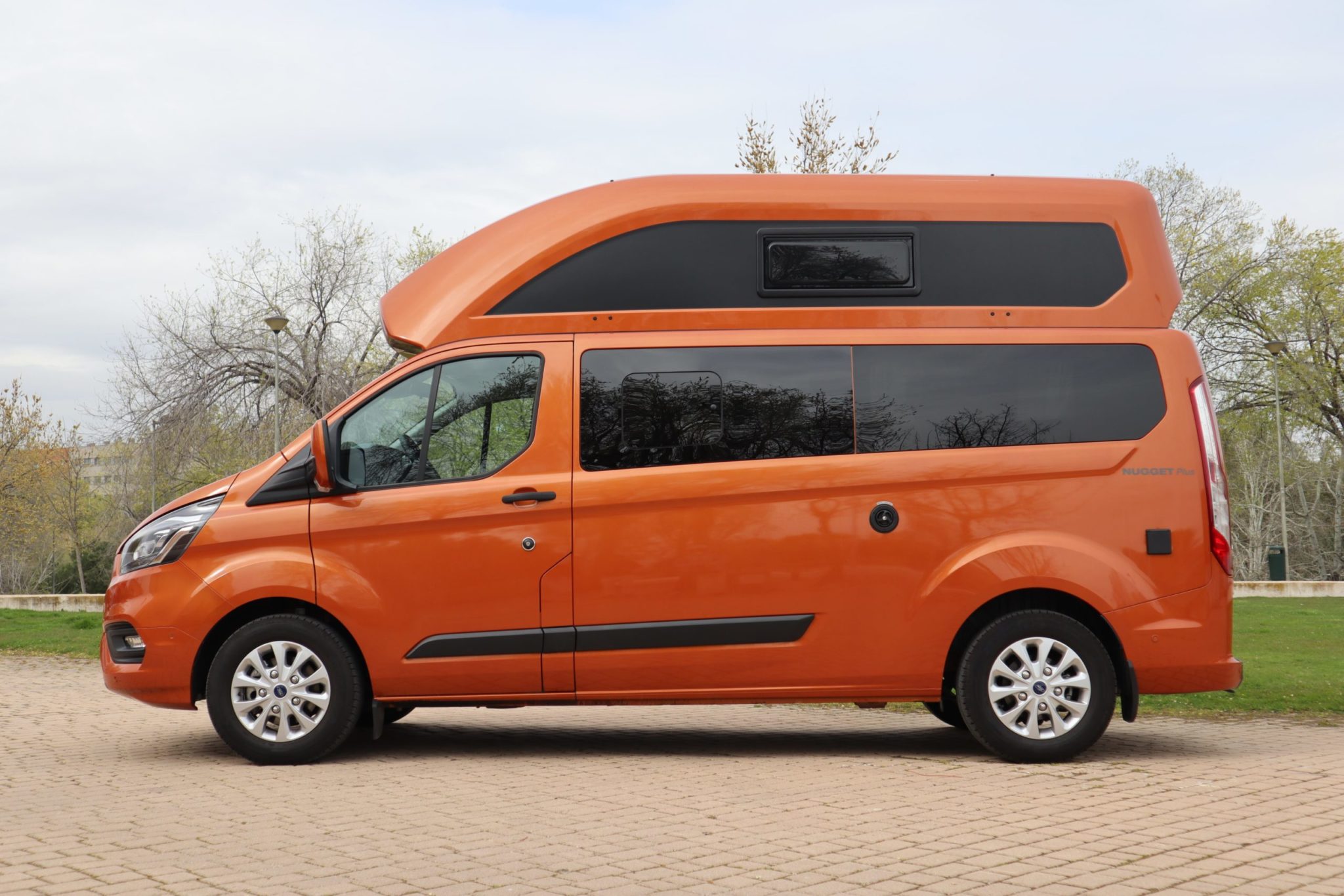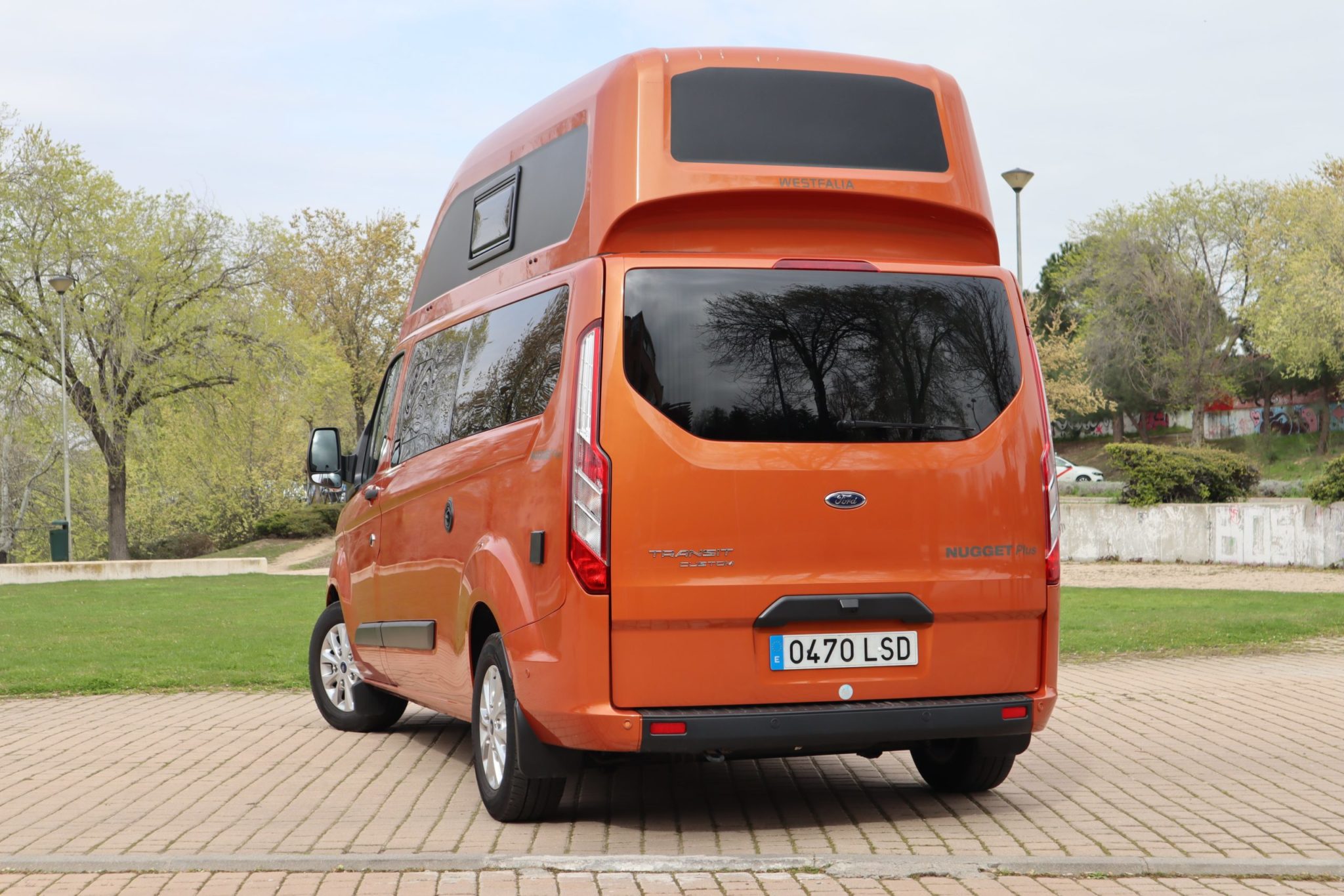 Esta semana hemos tenido la oportunidad de poder probar la primera camper en el canal, gracias a Ford. En este caso tenemos la más grande que tiene la marca del ovalo, que en colaboración con Westfalia han creado esta maravilla llamada Transit Custom Nugget Plus. ¿Y por qué tiene el apellido Plus? Porque esta es la versión con plataforma en la parte superior que nos esconde por dentro una segunda cama, sin tener que abrir el techo como si pasa en la Nugget convencional. Existen dos tipos de carrocerías, la corta y la larga L2, está última es la de nuestra unidad, que mide 37cm más que la normal. Sus medidas son considerables, y es que la cota que más destaca es la altura, con 2,85m, por lo que hay que tener mil ojos a la hora de meternos en parkings o zonas con poca altura. De largo mide 5,34m, de ancho 2,08m y su gran batalla es de 3,3m. Los motores disponibles son diésel de cuatro cilindros y 2.000cc. Tenemos una versión de 130cv y otra de 185cv, como es el caso de nuestra unidad, además de que puede estar unidad a un cambio manual de 6v y a un cambio automático. Gracias a este motor diésel, esta camper luce la etiqueta C de la DGT.