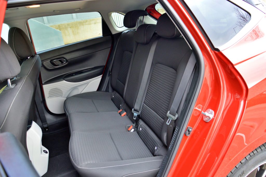 El espacio en las plazas traseras es uno de los mejores del segmento, con gran espacio para las rodillas y correcto para la cabeza hasta 1`85 metros de estatura. La banqueta y respaldo son cómodos, y están acabados en tela como los de las plazas delanteras. La plaza central es algo más utilizable ya que no contamos con un reposabrazos central, pero sigue estando limitada a emergencias. Encontramos una toma USB tras el cofre central y huecos en las puertas para colocar algún que otro objeto.