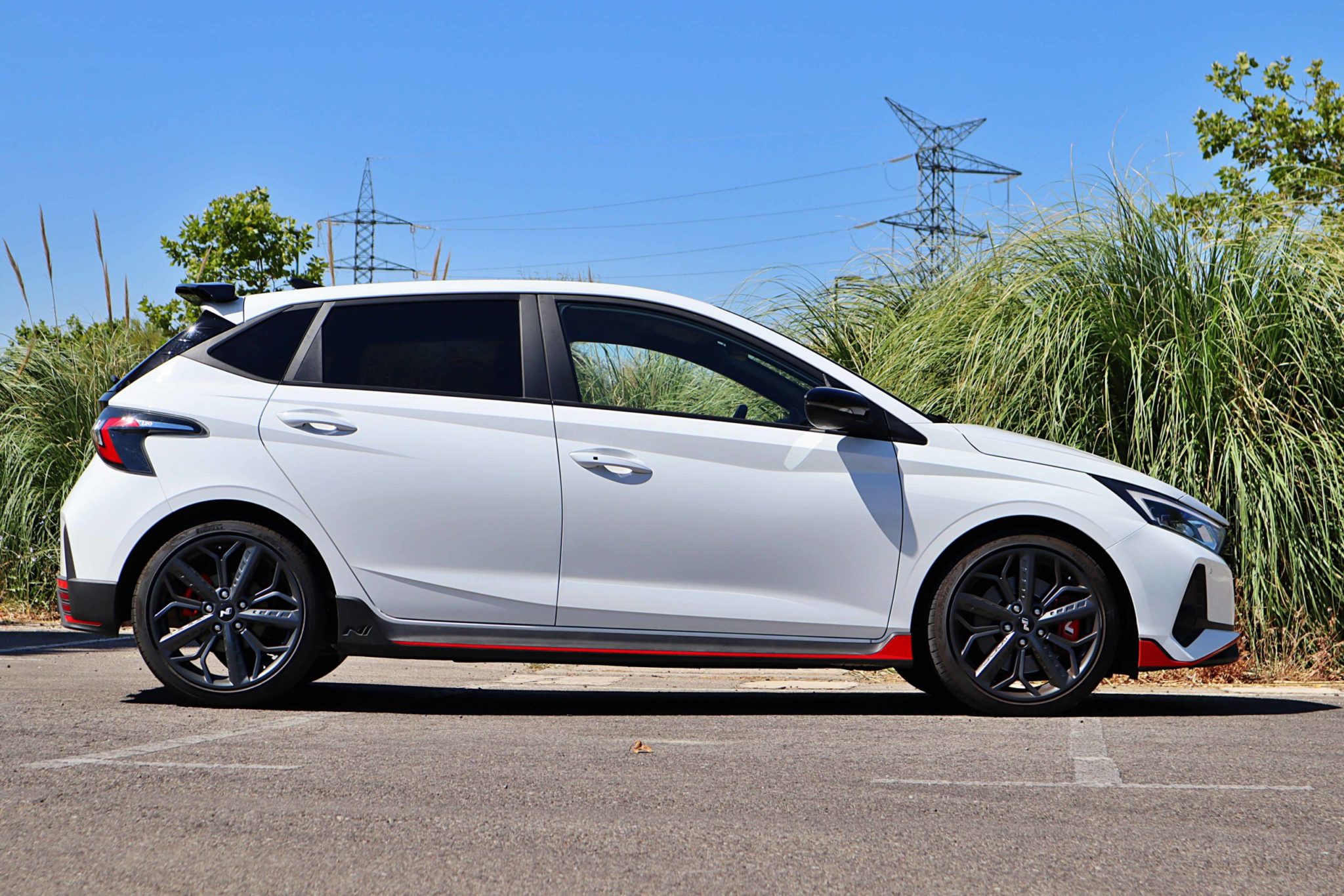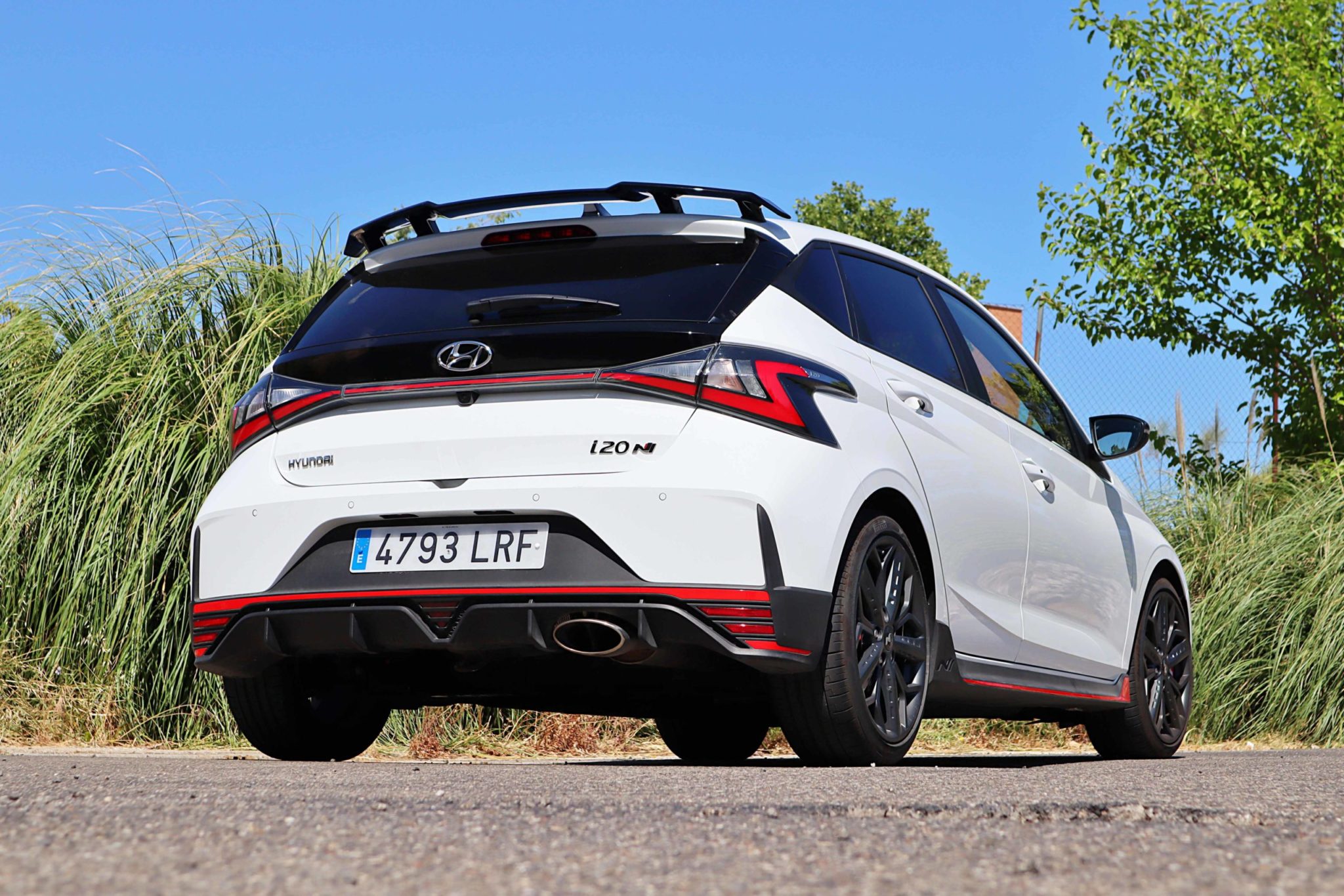 El Hyundai i20N es un i20 con una puesta a punto más radical: chasis reforzado, mejoras en la suspensión con 10mm menos de altura, motor 1.6 TGDI de 204cv, caja de cambios manual, llantas de 18″… unos ingredientes perfectos para lograr la máxima diversión. La estética recibe cambios, como en su parrilla, que tiene un diseño de bandera a cuadros, con un lip en negro y rojo y entradas de aire en los laterales. El alerón es grande y de carácter macarra, y las llantas montan neumáticos Pirelli PZero en medidas 215/40. La trasera es más ancha, con un difusor negro y rojo que integra una salida de escape real y que suena realmente bien, gracias a la mariposa que se abre en los modos Sport y N para escandalizar más.