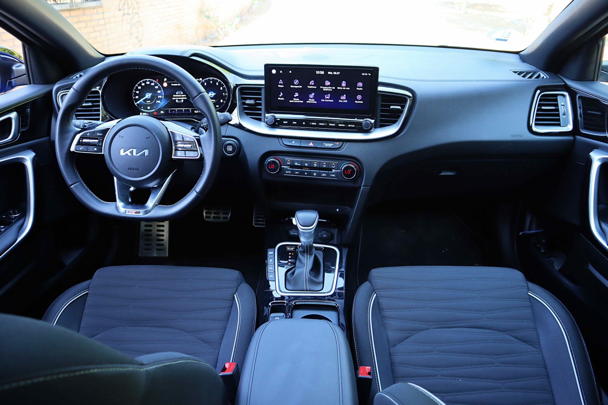 El acabado más deportivo que se ofrece en la gama Ceed es el GT Line, con permiso del GT, la versión 100% deportiva de 204cv. En este GT Line sólo se ofrecen dos propulsiones microhíbridas: una diésel de 136cv y otra gasolina, que es la que vamos a probar, con el 1.5 TGDi de 160cv y cambio automático de 7 velocidades.