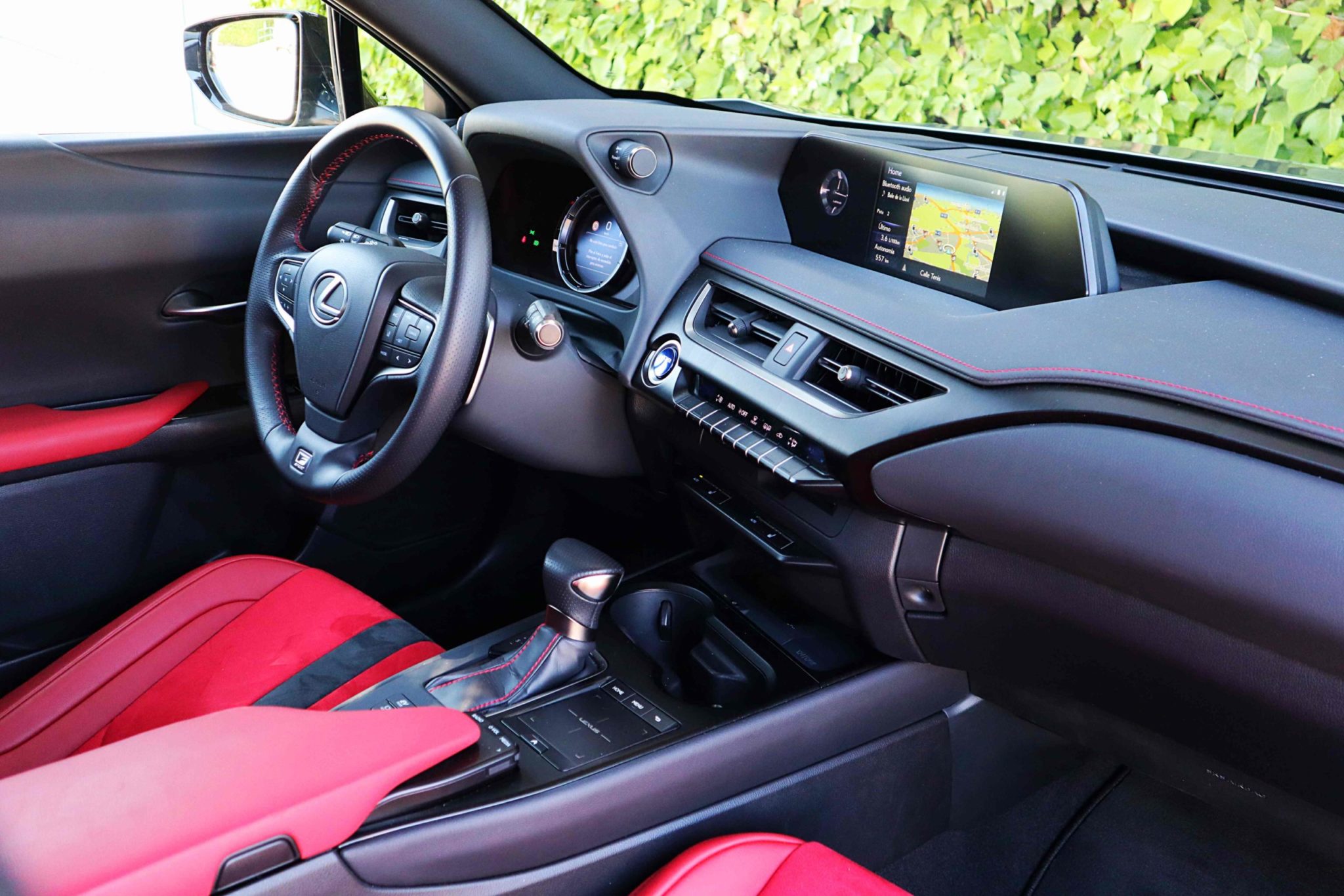 La dirección es de una dureza neutra y cambia dependiendo del modo de conducción en el que vayamos, al igual que la suspensión, que filtra de maravilla, con buen aplomo pero trabajando muy bien sobre las irregularidades del firme. Los frenos actúan perfectamente sobre los 1600kg del conjunto, aprovechando la frenada regenerativa para recargar la batería. En cuanto ayudas a la conducción, dispone de aviso de ángulo muerto, aviso de cambio de carril con corrección de volante y guiado, control crucero adaptativo, aviso de precolisión con frenada de emergencia y tráfico cruzado… Este UX está a la última en seguridad.
