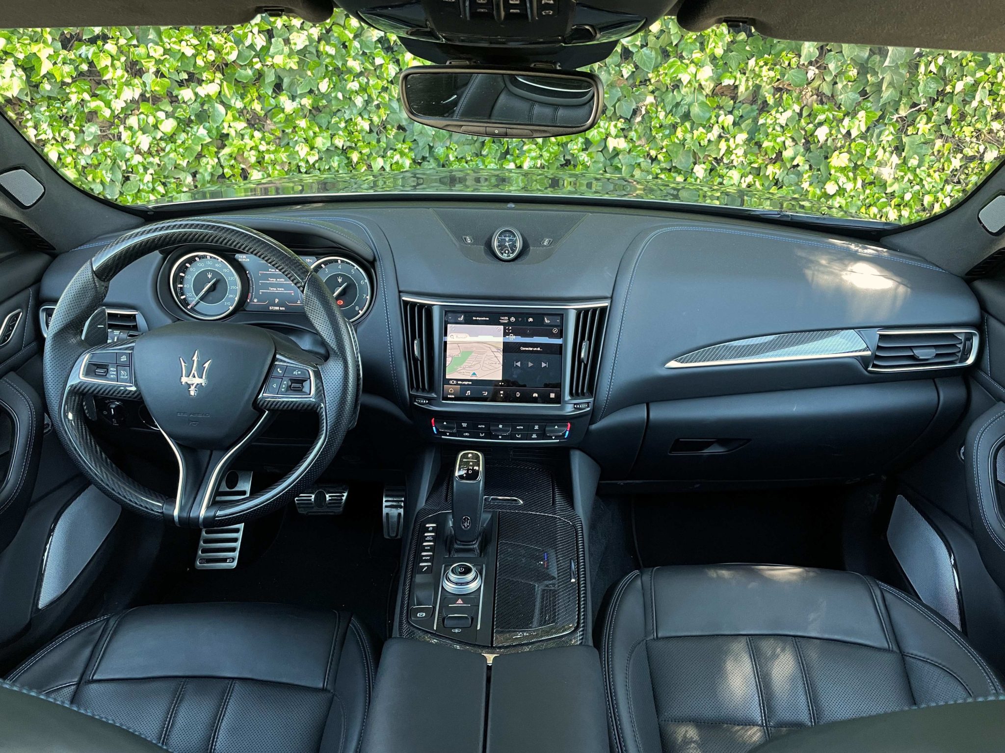 Según el modo de conducción que activemos, la dirección se volverá más dura y precisa o más blanda; las suspensiones se endurecerán o incluso cambiaran de altura (este Levante tiene 5 alturas distintas). Este SUV es muy camaleónico, ya que se adapta perfectamente a la conducción que queramos tener, más tranquila o más cañera. Los frenos son ventilados y actúan contundentemente sobre el conjunto de más de 2 toneladas. En cuanto a las ayudas a la conducción, no integra apenas ya que no tiene equipado el pack de asistentes (opcional). Esta unidad sólo integra control crucero convencional y sensores de aparcamiento.