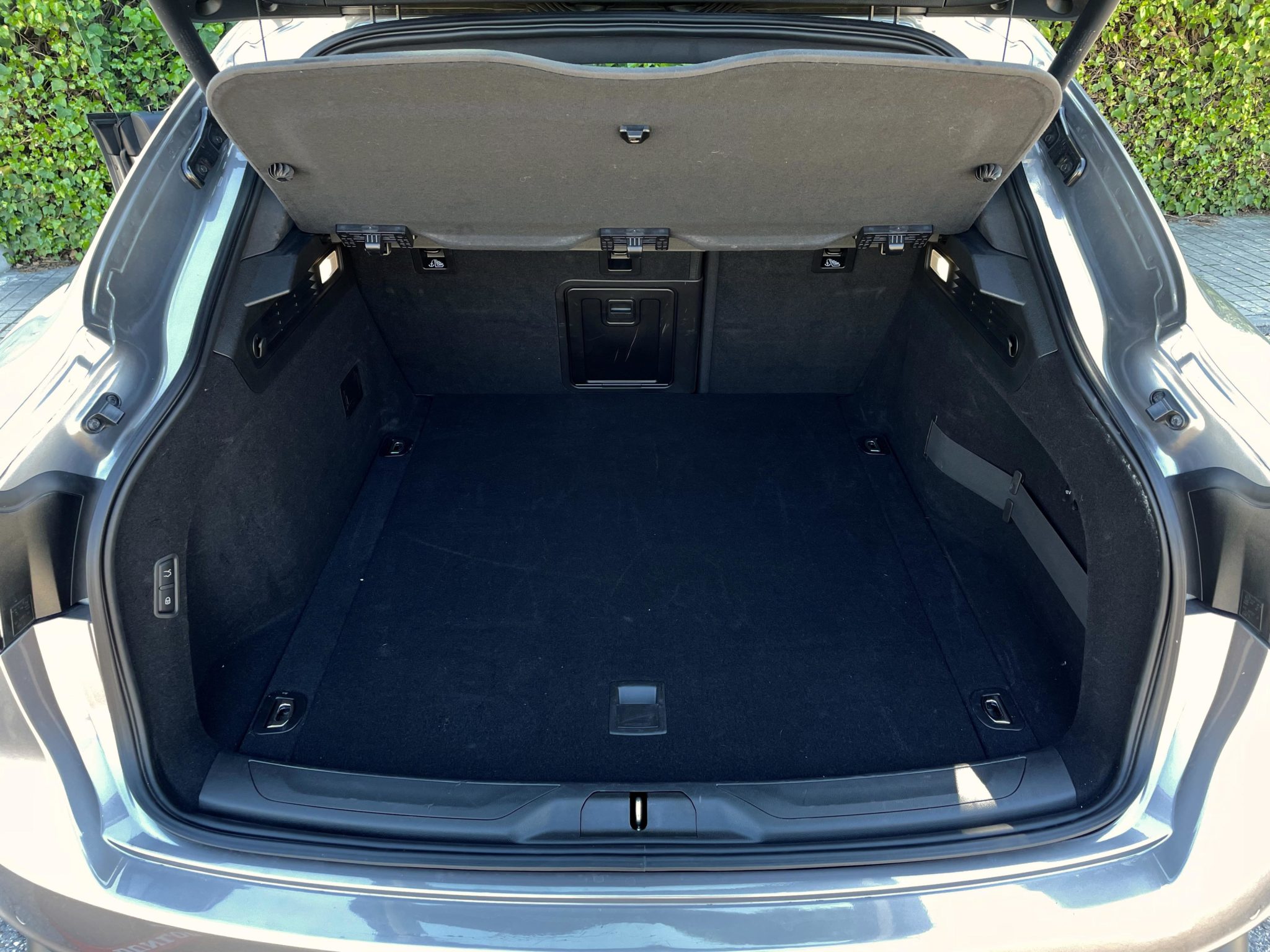 El maletero es de apertura eléctrica y dentro encontramos 580L de capacidad, ampliables hasta 1625L. Las formas son regulares y la boca de carga está enrasada con el piso. Debajo se ubica el kit reparapinchazos.
