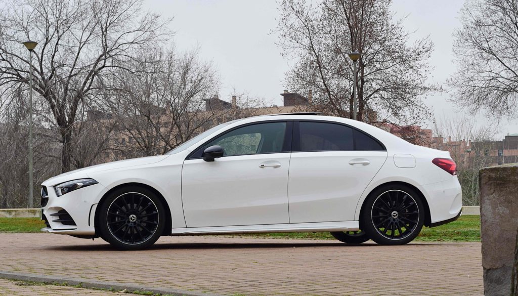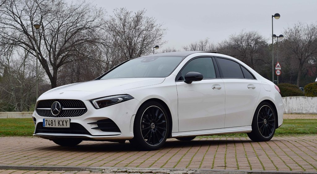 El Mercedes Clase A es el turismo del segmento C de la marca alemana. Se ofrece con carrocería hatchback o sedán, ofreciendo las mismas versiones y motorizaciones. En esta prueba vamos a conocer la versión sedán o berlina, como la denomina Mercedes. Mide 4’55M de largo, 1’79 de ancho y 1’44 de alto, y se ofrece en versiones 180, 200, 220 y A35 AMG.