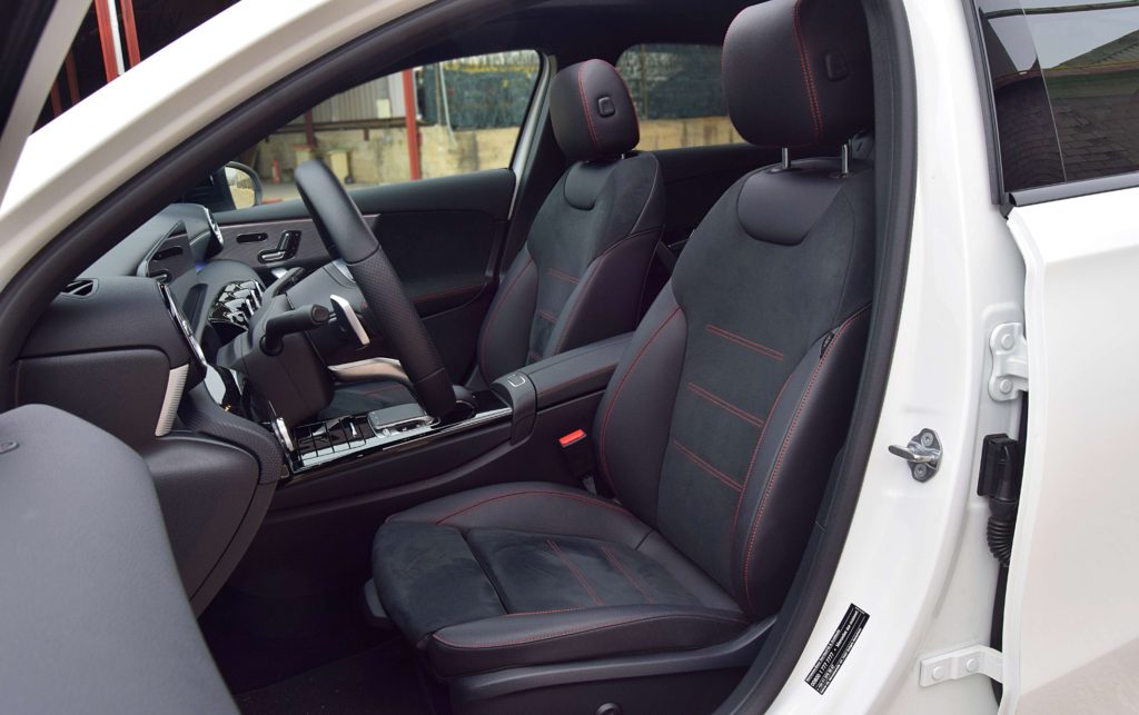 Es un coche rápido, realiza el 0-100en 8,3 segundos, pesa 1365 kilos y tiene un coeficiente aerodinámico de 0,22, un dato magnifico que viene de la estética tan refinada y del carenado de los bajos de este Clase A. Las suspensiones filtran excelentemente todas las imperfecciones y resaltos de la carretera y son muy cómodas tanto para ciudad como por carretera. No tenemos frenos especicificos en esta versión, pero actúan con gran efectividad y no hemos notado fatiga en ningún momento. En cuanto ayudas a la conducción este Clase A está completisimo: aviso de ángulo muerto, aviso de cambio invluntario de carril con correccion-guiado en 2 variantes, sistema SOS, sensores delanteros y traseros de parking y cámara 360º, aviso de trafico cruzado, sensor de lluvia y luces con los espectaculares faros Multibeam…