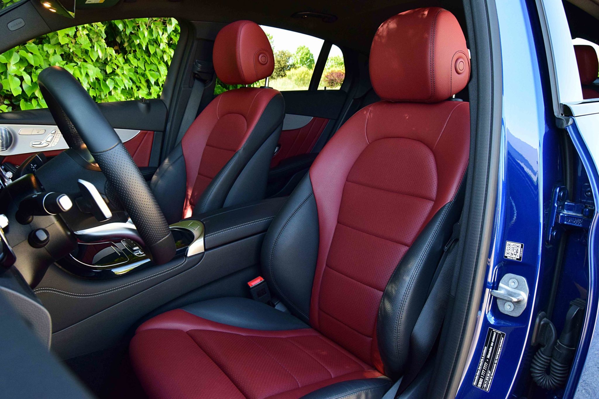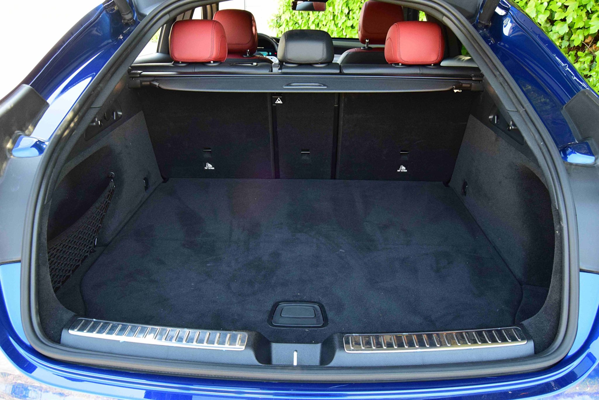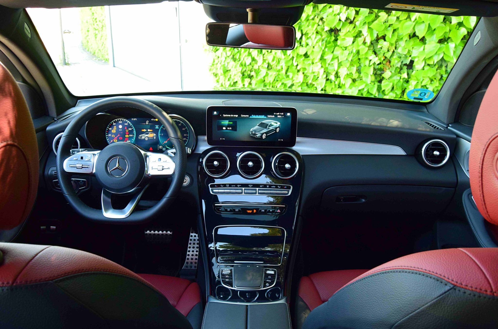 En el interior encontramos una calidad de materiales magnífica, y podemos apreciar que en este GLC Coupé aún no han “juntado” las pantallas del cuadro de instrumentos y sistema multimedia, como sí ha hecho la marca con modelos más nuevos. Como elementos, encontramos sistema MBUX, pantalla de 10’25 pulgadas con navegación, conectividad, cámaras 360, y toda la información relativa al sistema híbrido. Los asientos son de cuero, muy cómodos y disponen de todo tipo de reglajes eléctricos, además de 3 memorias y calefacción en 3 intensidades. El techo panorámico es practicable, aunque no es de gran tamaño, ya que solo lo podrán disfrutar prácticamente los pasajeros de las plazas delanteras.