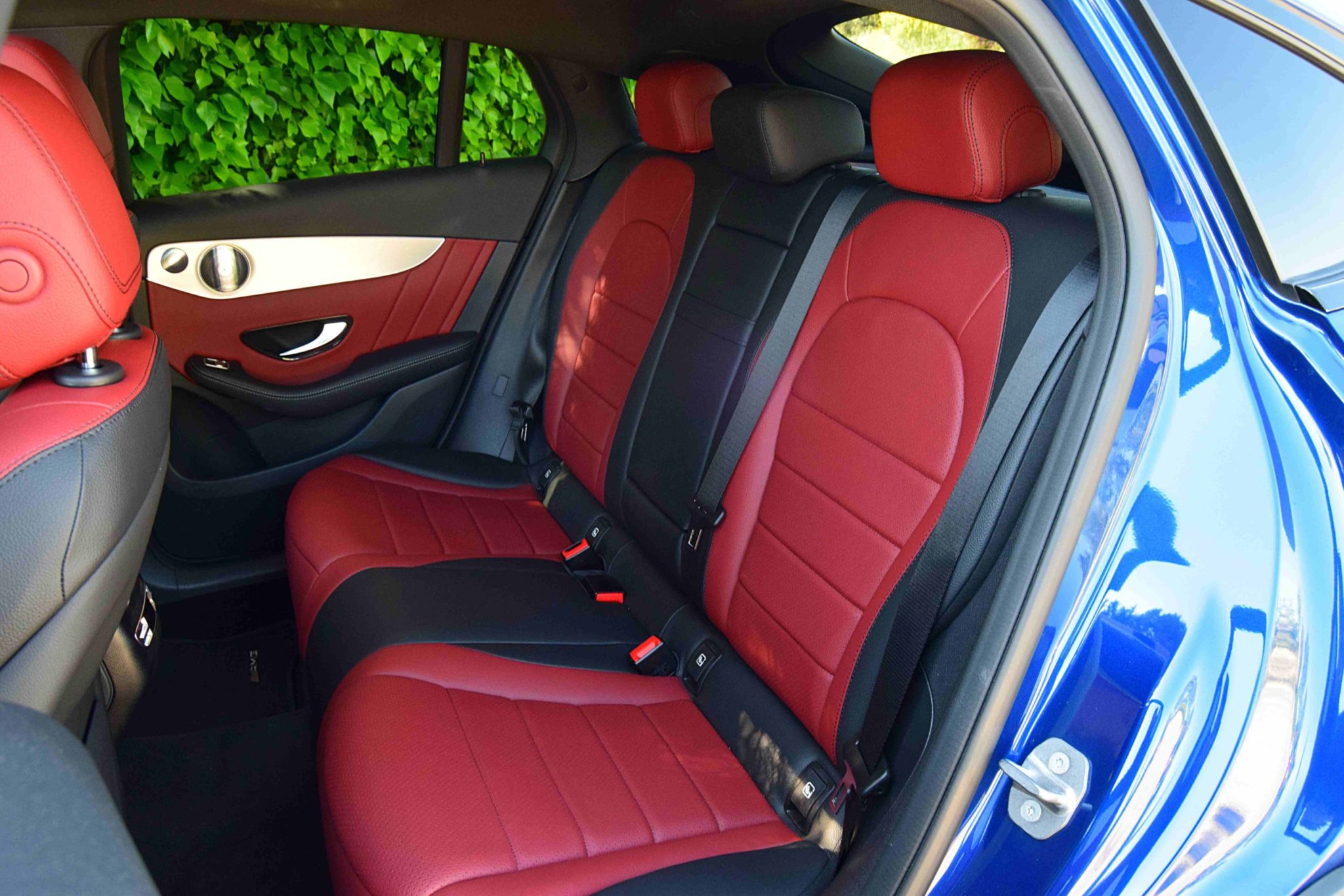 En las plazas traseras seguimos encontrando una gran calidad de materiales, un buen espacio para dos ocupantes y una tercera plaza para uso ocasional. Además de salidas de aire, disponemos de regulador de caudal y de temperatura, por lo que este GLC Coupé tiene climatizador trizona.