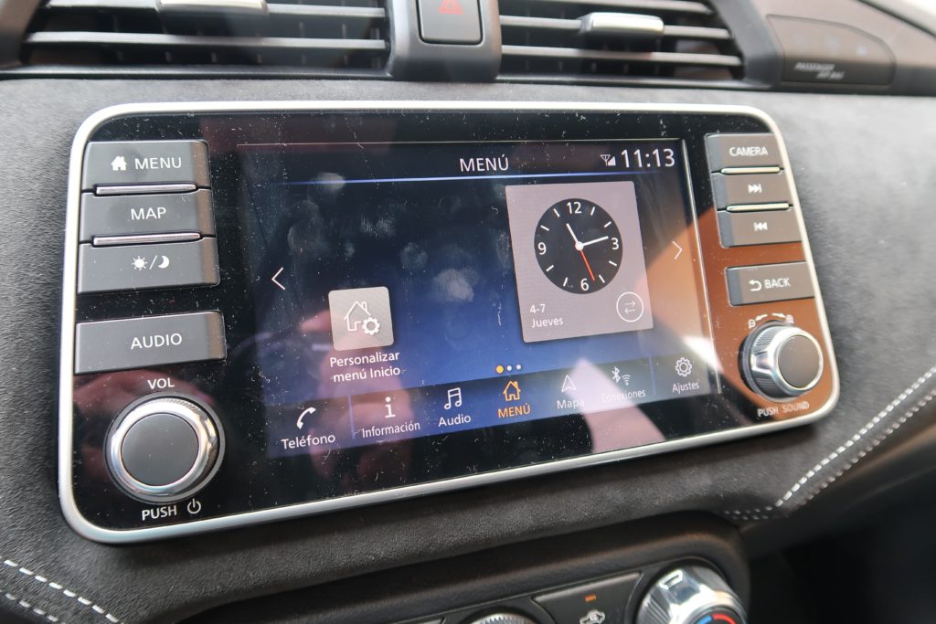 En el interior, este acabado N-Sport equipa unos asientos mixtos de cuero y alcántara, a la vez que también en el salpicadero encontramos un forrado en alcántara, que le da un toque más deportivo al urbanita de la marca japonesa. Como novedad con esta leve actualización del Nissan Micra, se implanta la nueva versión del Nissan Connect de 7”, con unos gráficos correctos y con la integración en este acabado del sistema de sonido Bose personal para el reposacabezas del conductor, que suenan francamente bien y el GPS.