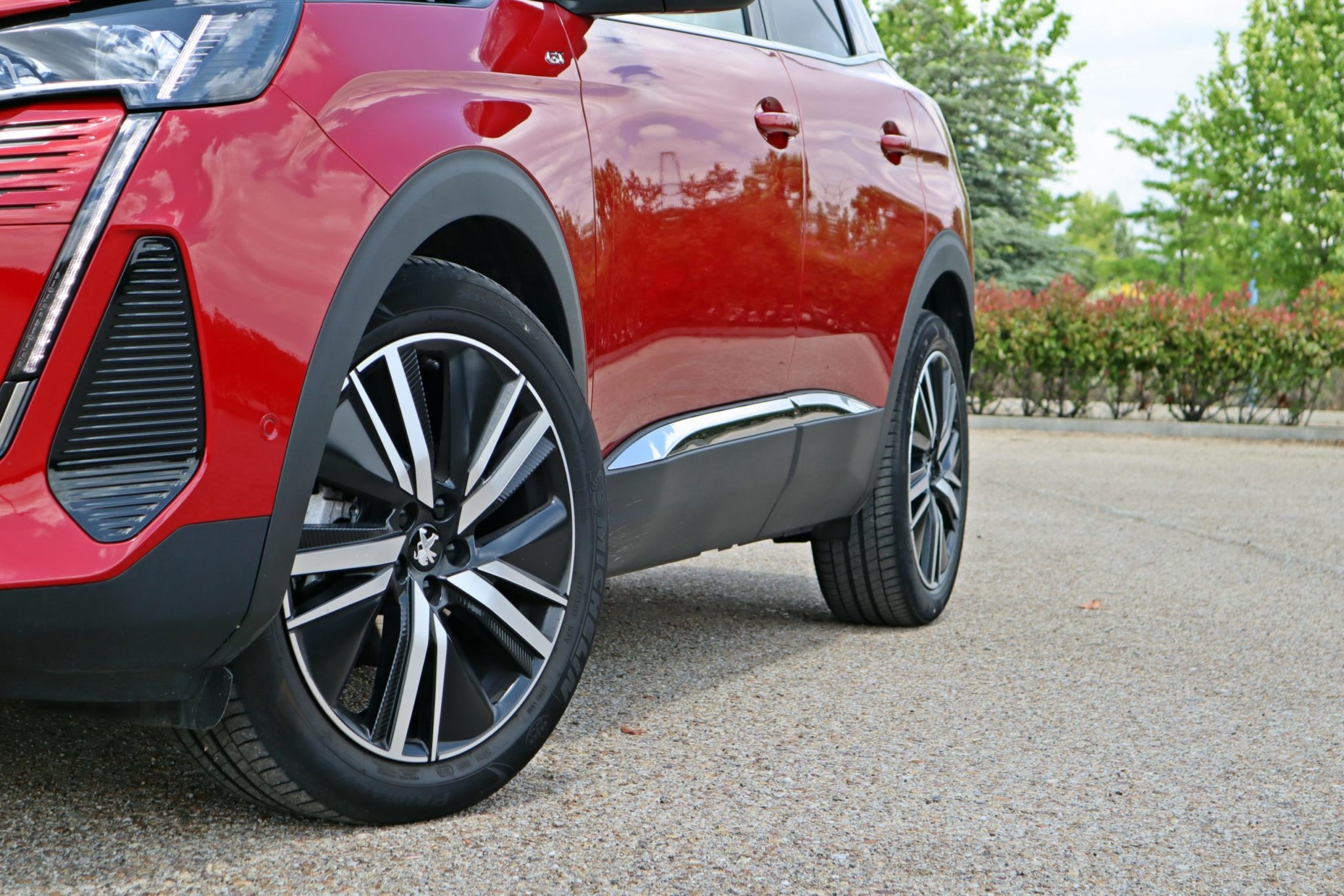 Nuestra unidad cuenta con el acabado GT Pack, que es el más alto de gama y el motor de gasolina de 180cv. Como detalles específicos encontramos los logos GT en las aletas delanteras y portón del maletero y unas llantas de 19” San Francisco. El color de la carrocería el Rojo Ultimate que contraste genial con llantas y techo en color negro.