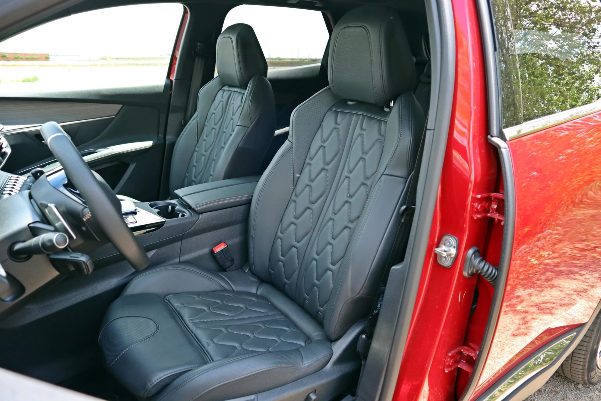 El interior apenas presenta cambios, seguimos encontrando un puesto de conducción peculiar, llamado I-cockpit, que consta de un volante pequeño y achatado tanto por la parte superior como por la inferior, una instrumentación digital que se visualiza justo por encima de este volante y una consola central ligeramente inclinada hacía el conductor. Este puesto de conducción a nosotros nos ha gustado, ya que no nos ha costado prácticamente nada encontrar nuestra posición, pero siempre recomendamos probar antes de comprar un 3008. Las calidades son correctas y todos los ajustes son buenos, encontrando mullido acoclado en las partes superiores e intermedias del salpicadero y en la parte superior de las puertas. El cambio más grande es el nuevo sistema de infoentretenimiento, que pasa de tener 8” a 10” desde el acabado Allure. Cuenta con mapas, conectividad plena para móviles, el climatizador bizona integrado y un sistema de cámaras delanteras y traseras de una calidad baja y que deberían de mejorar para el próximo 3008. Esta unidad gracias al acabado GT Pack viene muy bien equipada, y a esta unidad se la han incluido varios extras como el techo solar corredizo y los asientos de cuero con calefacción en tres intensidades, memoria y ajustes eléctricos para el asiento del conductor y cinco modos masaje en varias intensidades para los dos asientos delanteros. La verdad que los asientos son una maravilla a la hora de realizar viajes largos, haciendo que no lleguemos nada fatigados ni cansados a nuestro destino.
