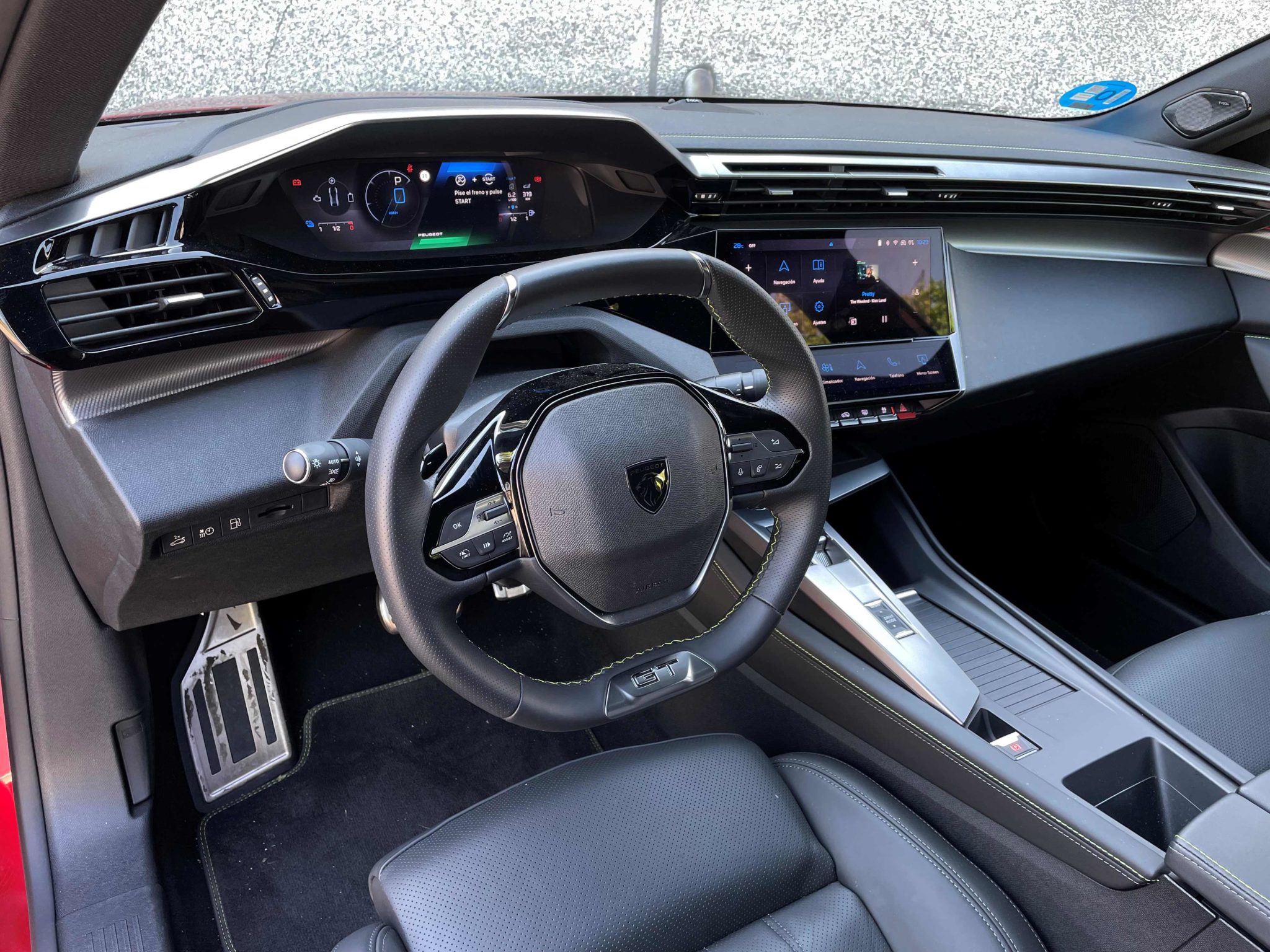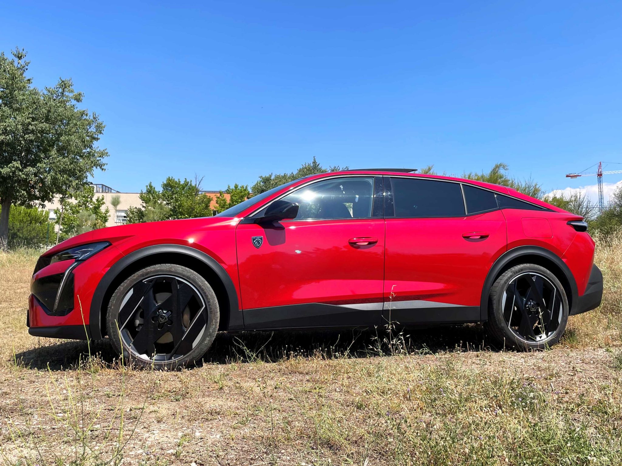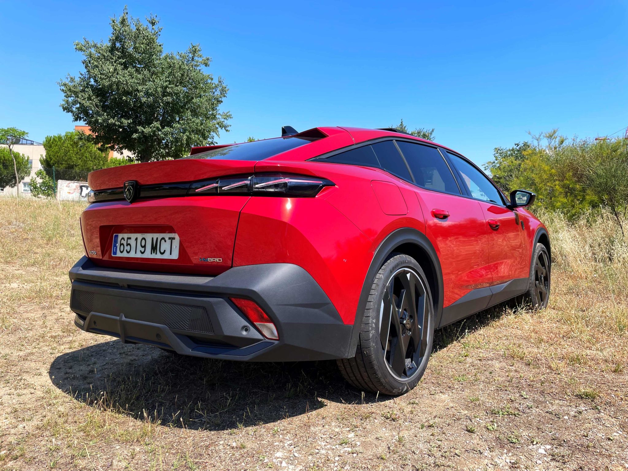 Mide 4,69M de largo, 1,85 de ancho y 1,48 de alto, y su distancia entre ejes es de 2,78M. Se puede escoger en 3 acabados: Alure, Allure Pack y GT, y también existen 3 propulsiones. La primera, con etiqueta C, está compuesta por un motor de gasolina 1.2 Puretech de 3 cilindros y 130cv con caja de cambios automática. Las otras dos son híbridas enchufables con etiqueta 0, compuestas por un motor de gasolina 1.6 Puretech y un motor eléctrico de 110cv. Las potencias finales son de 180 o de 225cv, dependiendo de cuál versión escojamos. La caja de cambios también será automática de 8 relaciones y la batería de 12,4kWh, que otorga una autonomía de 63km.