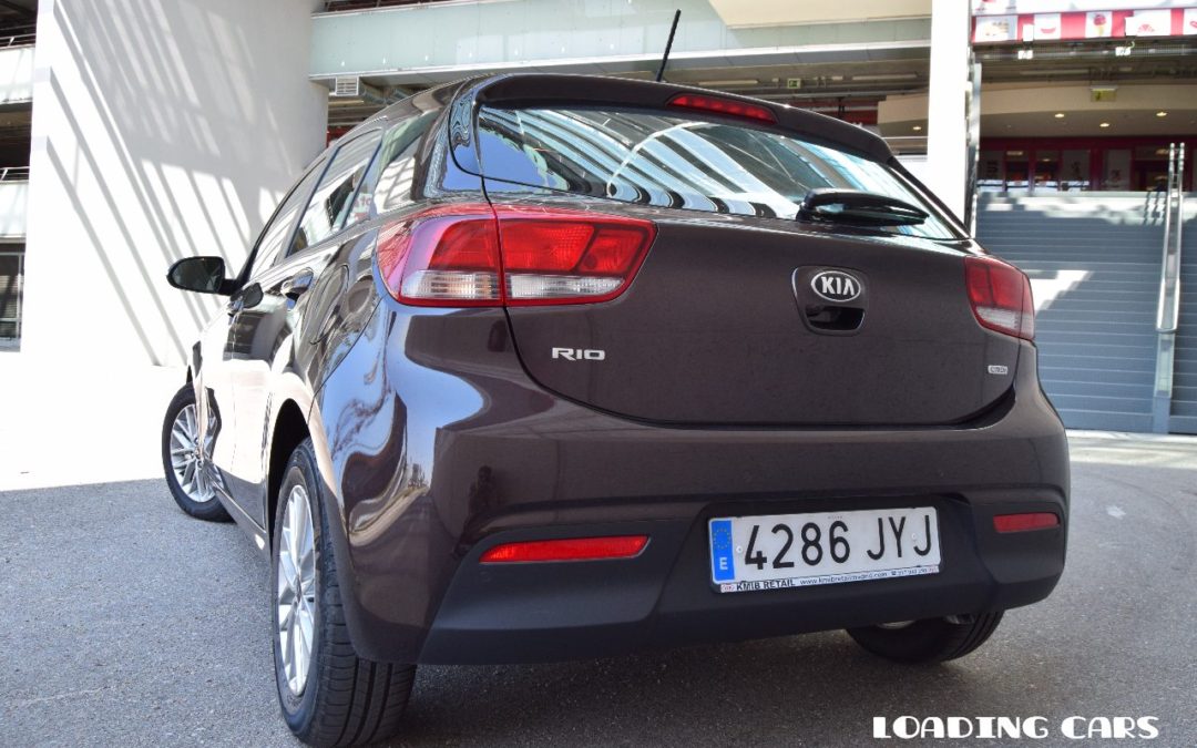 En el exterior cuenta con el color Deep Siena Brown que le da un toque muy elegante a este Rio. En la parte frontal destaca la seña de identidad de la marca coreana, su parrilla, esta vez actualizada y que nos recuerda a la del nuevo Stonic, cuenta con un parachoques con unas formas muy bonitas y con unos bajos que le dan un toque muy deportivo y unos faros con la luz diurna led en uve alargados hacia el lateral creando una línea de tensión hasta la trasera del coche. En la trasera destacan unos faros en disposición horizontal con una luneta trasera de tamaño pequeño dándole un toque deportivo. Al lado del emblema de Kia encontramos una cámara de visión trasera, sin duda el sitio ideoneo donde colocarla para conseguir una buena visión perimetral de la parte trasera. El parachoques de carácter deportivo tiene un difusor enorme de plástico en el que nos envuelve muy bien la matricula.