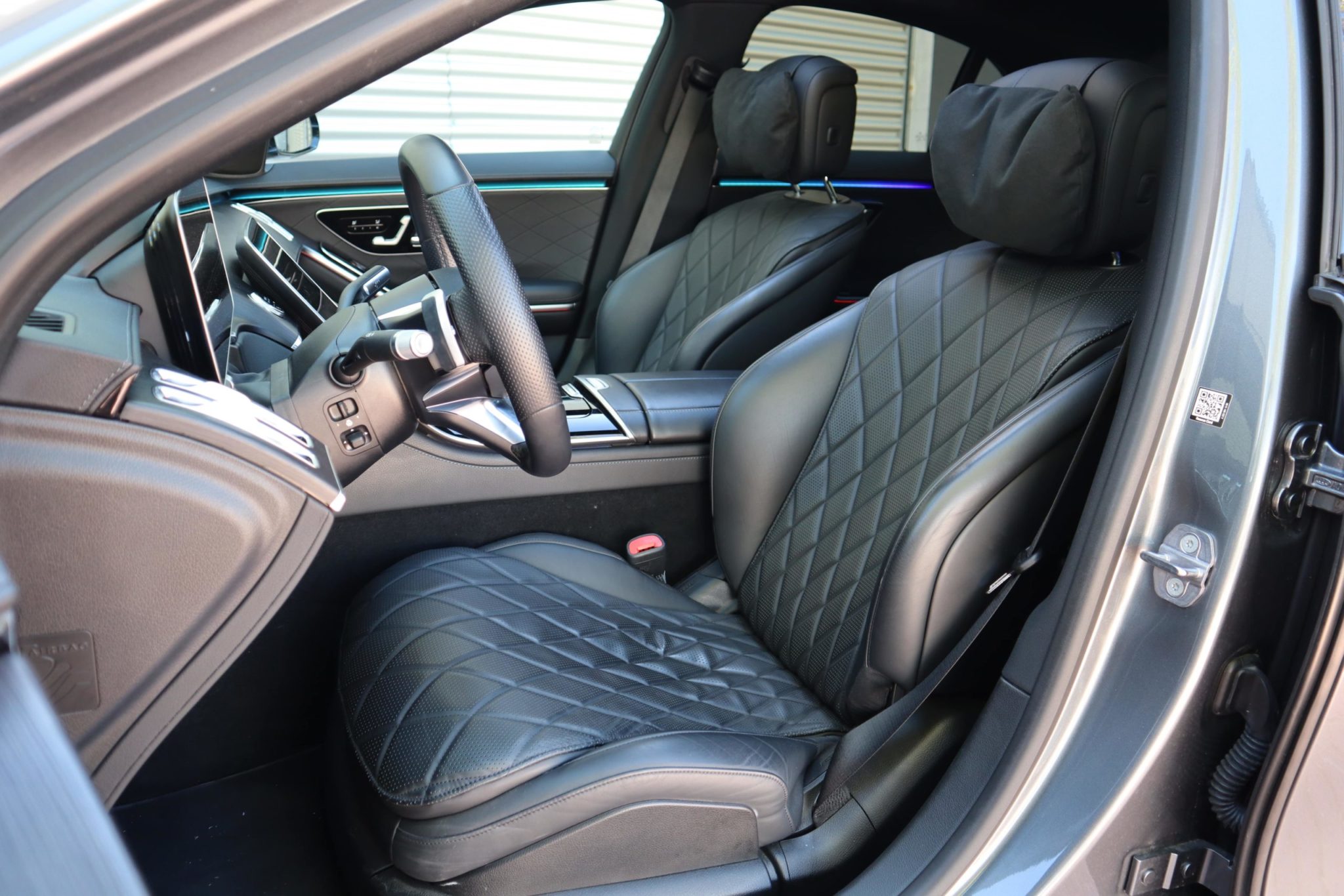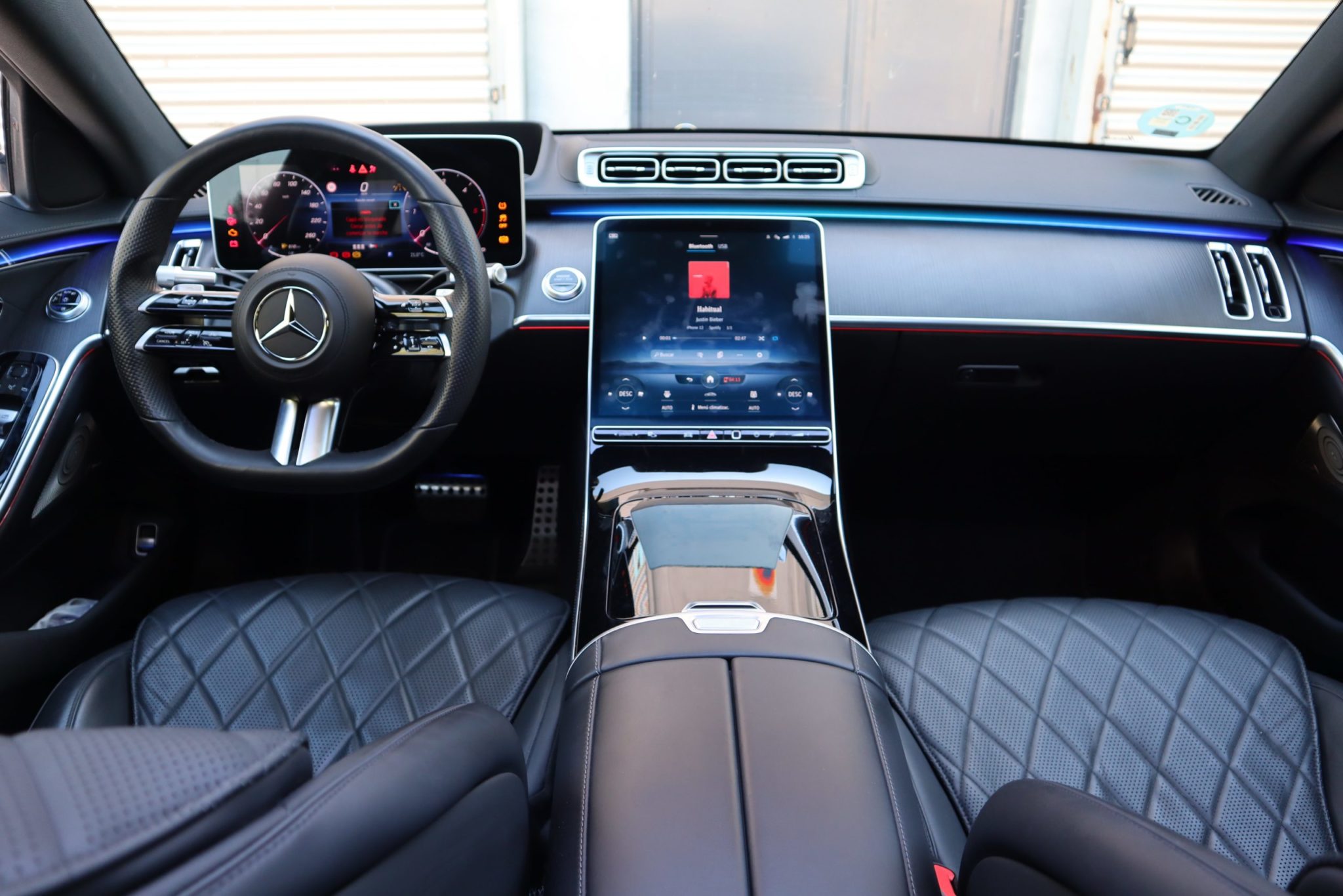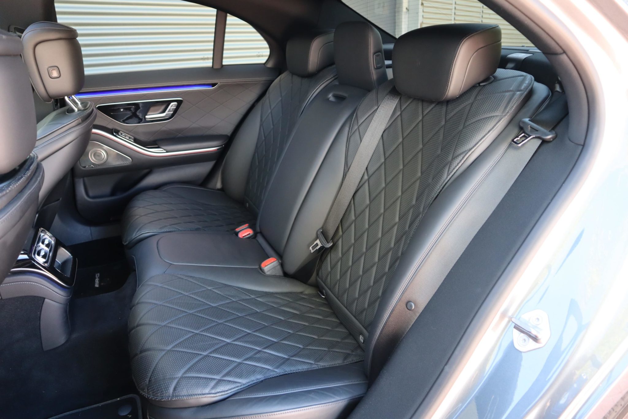 La pantalla central es muy grande (12’3”) y tiene uno de los mejores gráficos del mercado con un montón de sistemas que lo convierten en una de las pantallas con mayor tecnología del mercado. Las cámaras de 360 grados son espectaculares y nos hace ver lo que hay alrededor del coche de maravilla. Por supuesto cuenta con navegación y conectividad plena para móviles de manera inalámbrica, además de múltiples ajustes del vehículo. Uno de los puntos fuertes de estas plazas delanteras son los asientos, que son butacones en cuero que cuentan con calefacción, ventilación, masaje, reglajes eléctricos, memorias… un sinfín de cosas para hacer que vayamos flotando en este clase S.