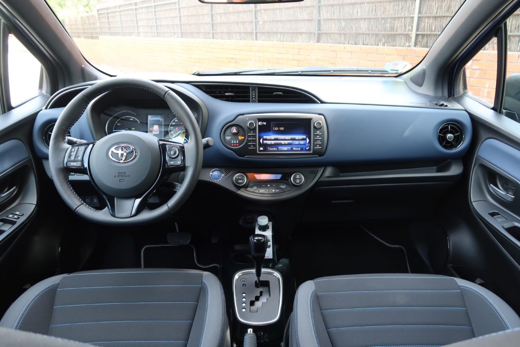 Pero centrémonos en las plazas delanteras, donde encontramos un salpicadero con un diseño muy agradable a cualquier público, con un sistema de información y entretenimiento de 7” en el centro del salpicadero, donde podremos observar el mapa de la navegación que es opcional, datos sobre la propulsión híbrida y consumos y todo el sistema de radio, media y teléfono. Algo que se echa en falta es conectividad para Apple y Android, a la vez que la pantalla tenga un funcionamiento algo más fluido. La estética interior también es original como su diseño exterior, gracias a una combinación de los colores azul y negro. La instrumentación es clara y con este restyling se introduce una pantalla TFT que ofrece mucha información, como ajustes el vehículo, ayudas a la conducción y consumos.