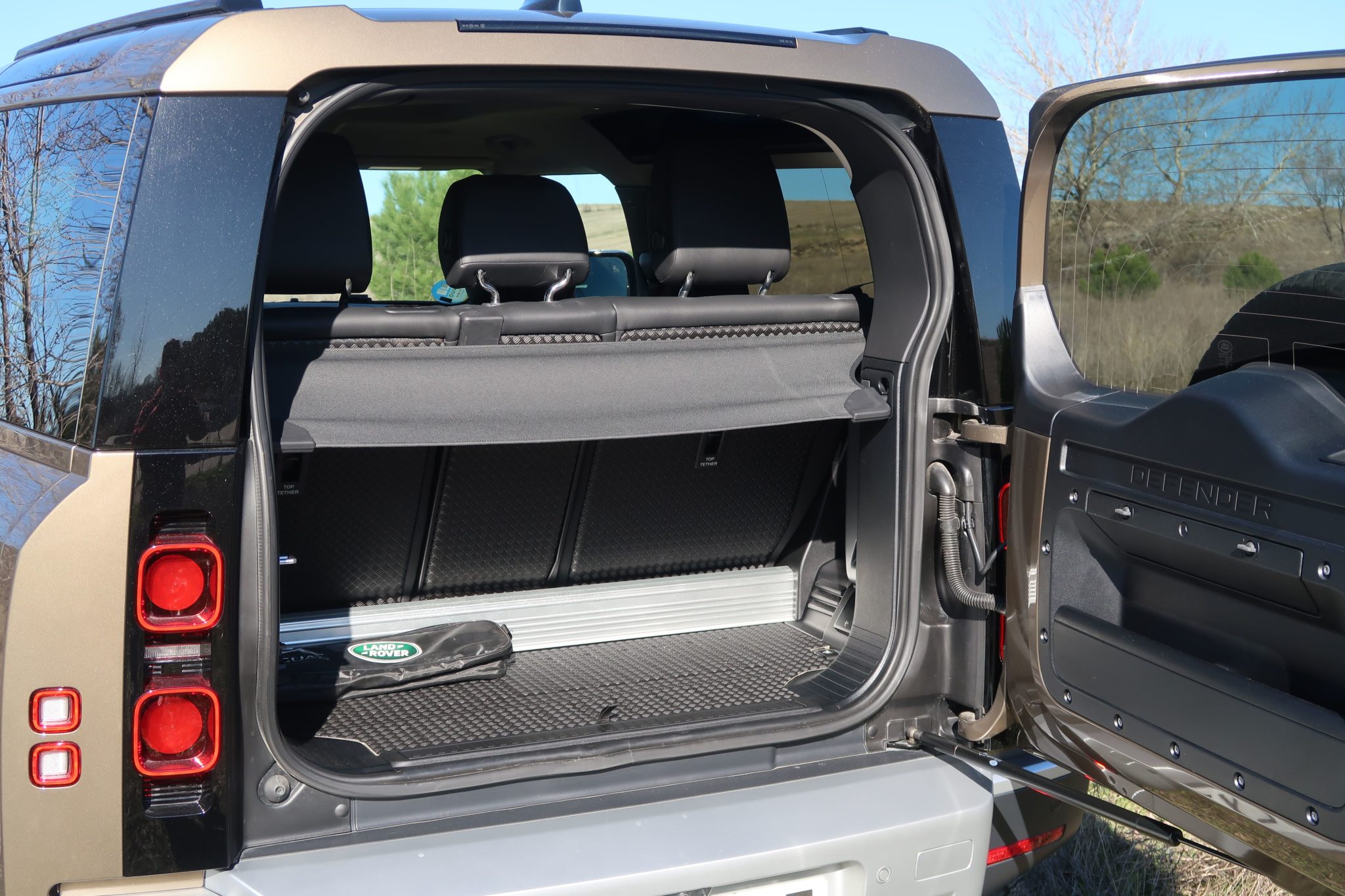 El maletero es de apertura manual y lateral y dentro nos esconde 297 litros, una capacidad algo justa, pero hay que tener en cuenta que estamos ante un Defender 90. En este maletero encontramos un suelo forrado en goma para limpiar mejor, una salida de 220V como las de nuestra propia casa, una salida de mechero y unos botones para subir y bajar la suspensión neumática.