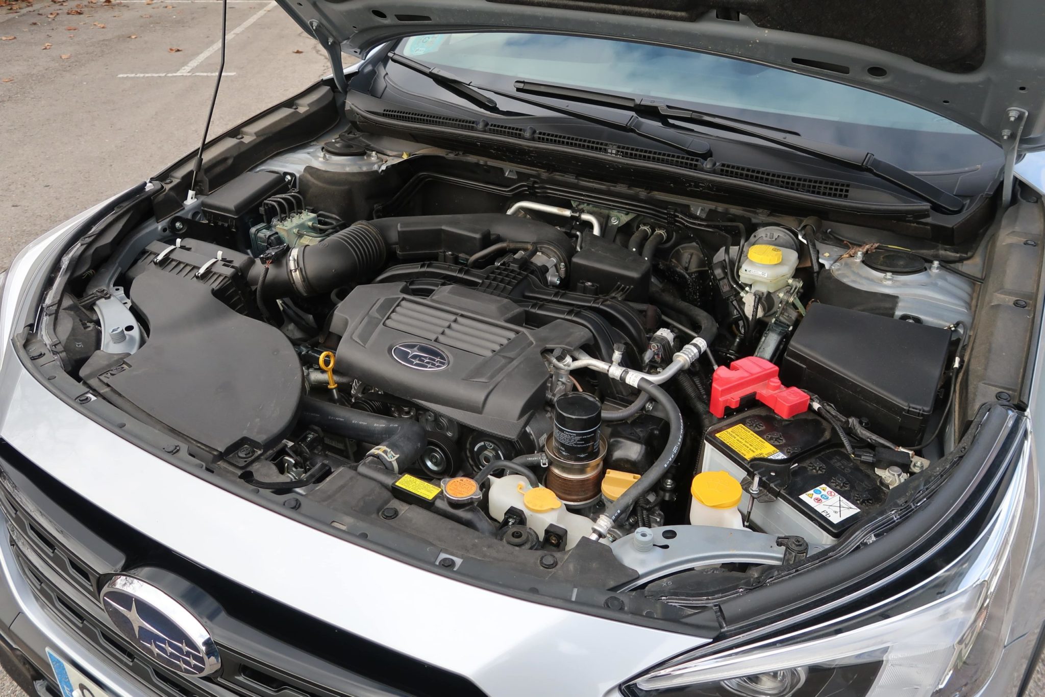 Respecto a los acabados tenemos tres: Trek, Field (como el de nuestra unidad) y el acabado Touring. Debajo del capó encontramos un bloque de gasolina atmosférico de 2,5 litros y 4 cilindros en disposición Boxer que rinde 169cv. Siempre está asociado a un cambio automático Lineartronic y a una tracción integral llamada por la marca como Symmetrical All Wheel Drive. Esta propulsión luce la etiqueta C aunque la marca nos ofrece la instalación de GLP por 2000 euros más con la que obtendremos la etiqueta ECO.