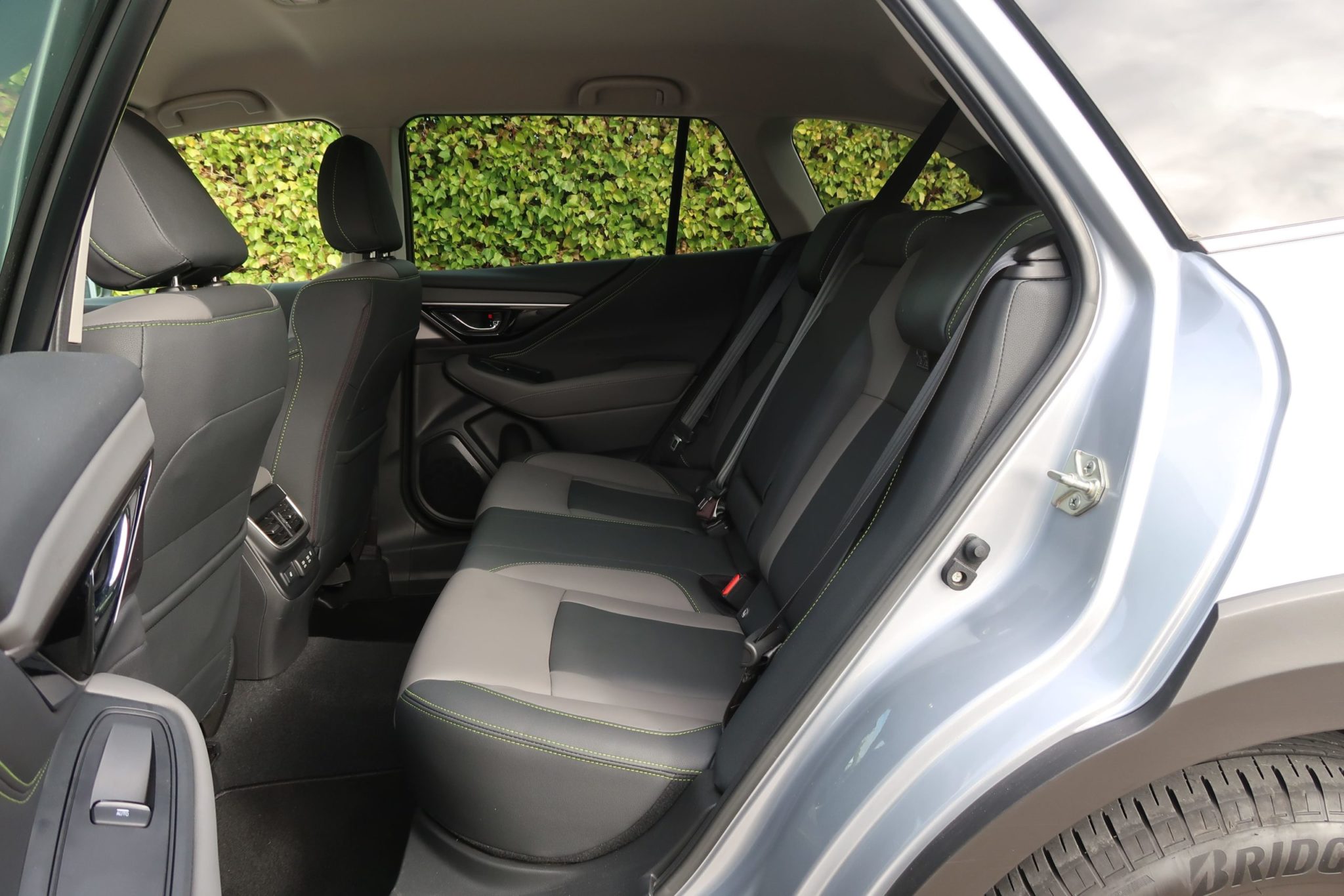 Las plazas traseras son perfectas para viajar, gracias a un buen acceso a ellas, podemos regular la inclinación del respaldo y la banqueta, que sigue con la tendencia del cuero en color claro, tiene un mullido acolchado. El espacio es perfecto tanto para cabeza como para piernas, y se notan los 3cm más ancho que es este Outback. Otros detalles interesantes en esta segunda fila de asientos, es que tenemos salidas de aire, calefacción en dos intensidades para las plazas laterales, salidas USB, un apoyabrazos central… La plaza central es más estrecha y cuenta con un túnel de transmisión abultado debido a que tenemos una tracción integral, aunque para niños o adultos de mediana estatura no está nada mal.