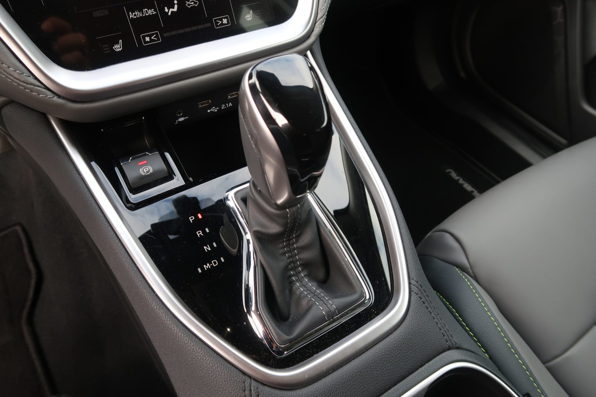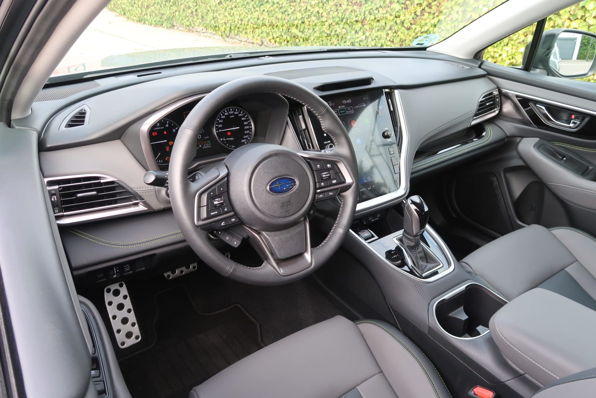 El interior ahora muestra mejor calidad de materiales, aunque queremos aclarar que el anterior ya contaba con una buena realización de sus materiales en el habitáculo. Se percibe cierto aire premium, y es que al fin y al cabo estamos con el buque insignia de la marca nipona. El salpicadero se ha modernizado integrando una pantalla en formato vertical de 11,6” que incluye todos los ajustes del vehículo, la cámara de visión trasera, la conectividad plena para smartphones… En la zona más baja vemos todos los ajustes del climatizador bizona, que ha perdido los botones físicos, y en la parte superior de la pantalla tenemos por ejemplo información sobre lo que estamos reproduciendo en el sistema de sonido y parámetros del vehículo. Es una pantalla que tiene una calidad de gráficos y táctil correctos y un paso de menú a menú relativamente rápido. Un detallazo que nos ha encantado, es que tenemos mandos físicos para manejar el volumen del sistema, para desempañar tanto las lunetas delantera como trasera y para subir y bajar la temperatura del climatizador. La instrumentación sigue con la tendencia que vemos en un XV o Forester, con agujas tradicionales para el velocímetro y cuentarrevoluciones y una pantalla TFT en el centro donde podemos ver todos los parámetros de las ayudas a la conducción.