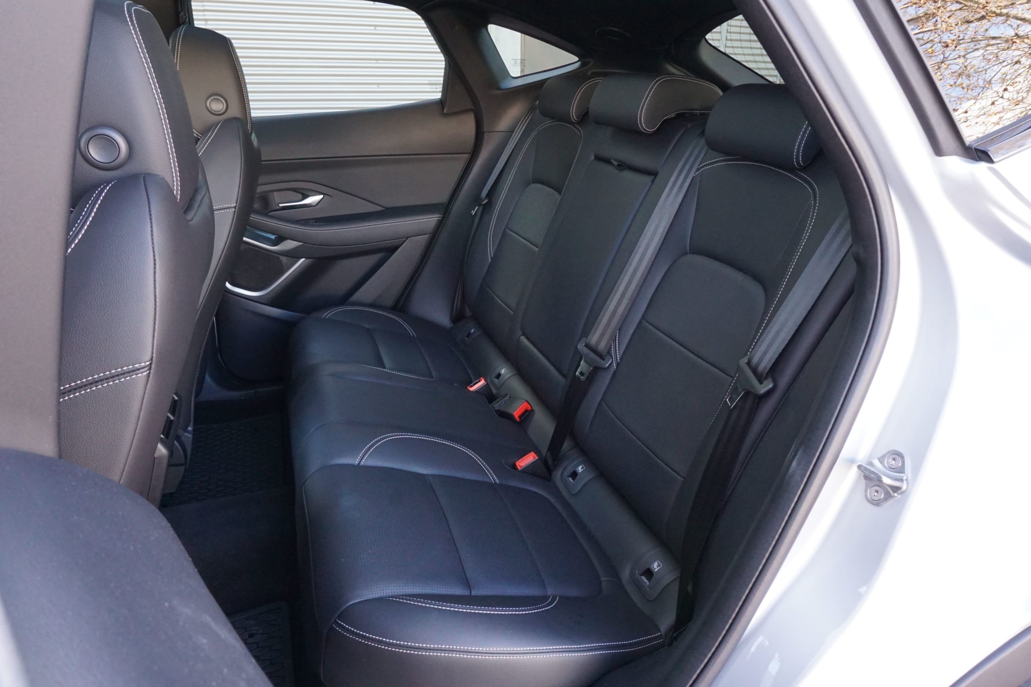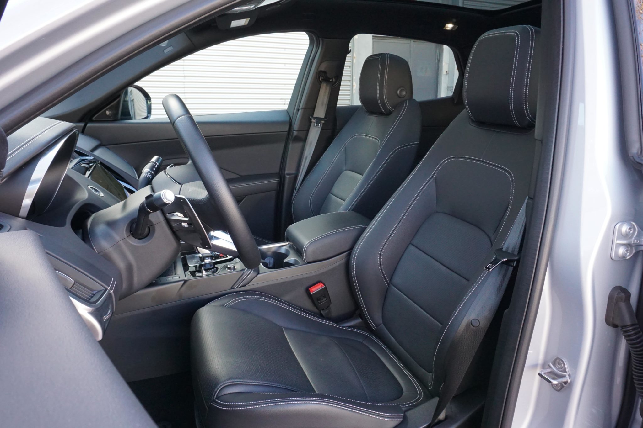 Todo el coche hace un guiño al diseño del espectacular deportivo de la marca, el F-Type, sobre todo en la trasera, con unos faros muy parecidos, alargados y estrechos y un difusor similar, aunque antes sacaba dos salidas de escape de verdad, y ahora nos tenemos que conformar con dos pequeños embellecedores.