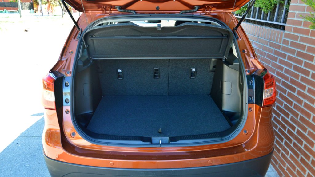 El maletero tiene una capacidad de 430L en su posición incial, con una forma muy regular y una boca de carga muy enrasada. A los laterales encontramos dos huecos y en la parte de la derecha tenemos a nuestra disposición una toma de carga de 12V y una luz para iluminar de noche. Si queremos aumentar la capacidad del maletero, tenemos dos opciones: ganar 10 litros colocando el suelo en una posición mas baja gracias a la modularidad que ofrece, alcanzando los 440L; o llegar hasta los 1269L totales si abatimos los asientos traseros en una proporción 60-40. Debajo del piso del maletero encontraremos un kit repara pinchazos.