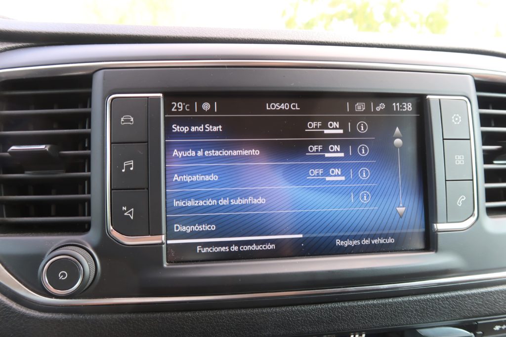 Ya puestos en marcha con el Proace Verso, recordamos que nuestra unidad cuenta con la carrocería intermedia y el motor de 150cv. Este motor se trata de un bloque de 2 litros diésel con 4 cilindros y adblue que rinde 150cv a las 4.000rpm y 370Nm de par máximo a las 2.000rpm. Este propulsor mueve de maravilla los 1900kg que pesa, con un par en bajas revoluciones que hace que no tengamos que jugar en exceso con el cambio manual de 6 velocidades, y así conseguir unos buenos consumos. La caja de cambios, de tacto algo tosco, tiene unos recorridos de palanca algo largos al igual que su escalonamiento mecánico, y es que en sexta a 120km/h rodaremos en sexta a unas 2250rpm. El consumo en nuestra prueba combinando todo tipo de vías fue de unos 7.5 litros cada 100km, un consumo de carburante que nos parece correcto teniendo en cuenta factores como su peso y volumen. La suspensión es blandita y confortable para el día a día, pero lo que si notamos es que en carreteras reviradas hay un acusado balanceo debido a su altura de casi 2 metros. Los frenos funcionan correctamente, pero el tacto del pedal es algo que no llega a convencernos, con un primer recorrido en el que no notamos nada de frenada y pulsando un poco más una frenada muy contundente, por lo que no es muy progresivo, algo que en ciudad se hace algo incómodo. El tacto de la dirección es algo duro en ciudad y con una acusada desmultiplicación de su dirección que gira 2 vueltas enteras, por lo que en ciudad haremos un poquito de brazos para maniobrar, y es que este Proace Verso está pensado para viajes largos o para trabajar en el día y sacarle todo su partido al espacio interior.