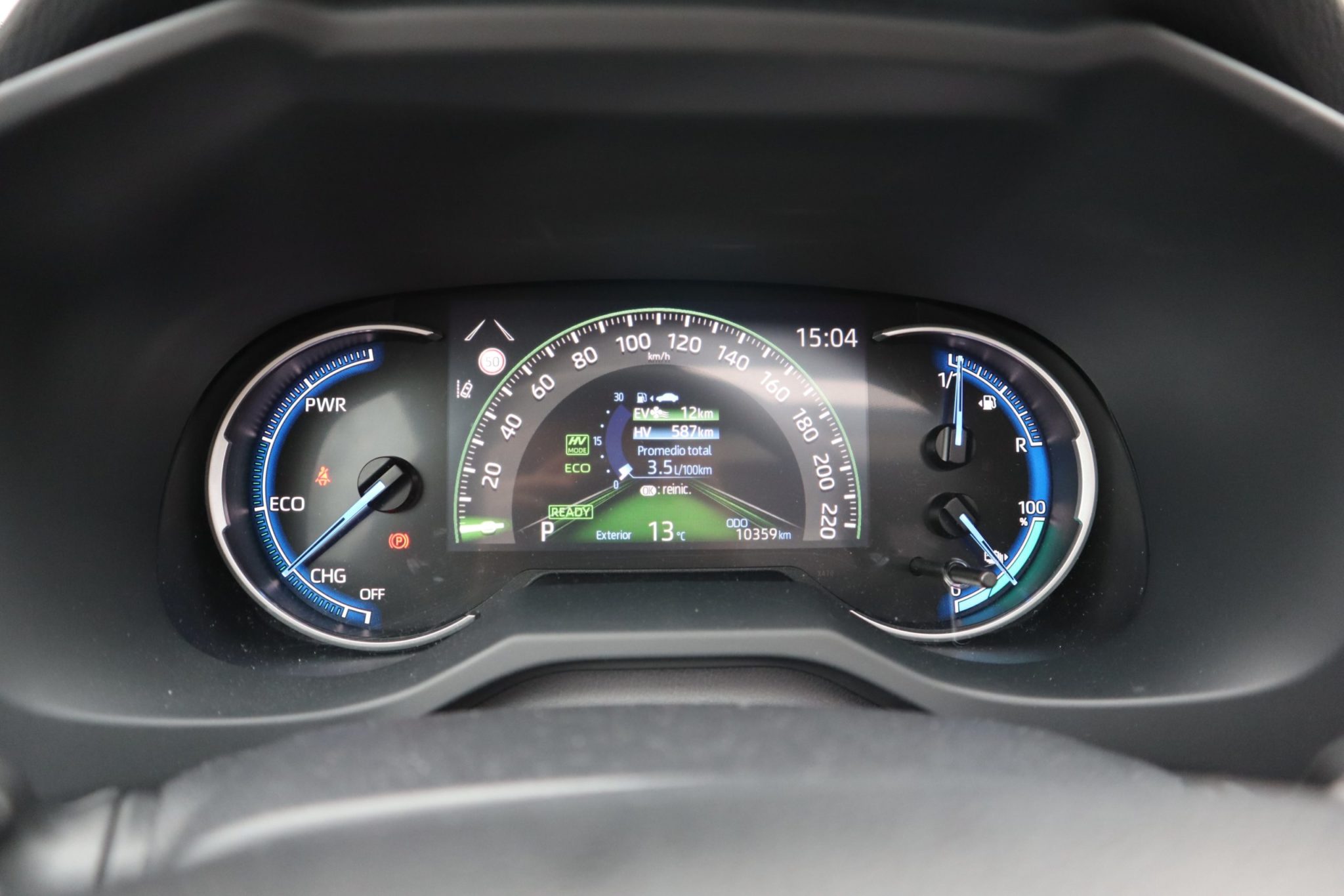 Respecto a ayudas a la conducción, tenemos abundantes sistemas que mejoran la seguridad en el día a día, como por ejemplo un control crucero adaptativo, sensor del ángulo muerto, cámara de 360 grados, aviso de precolisión con frenada de emergencia automática tanto delante como detrás, aviso del cambio involuntario con corrección del volante… Además este RAV4 cuenta con varios modos de conducción que hace que se varíe la respuesta del acelerador y la dureza de la dirección (Eco, Normal y Sport) al que se añade un modo Trail para salir fuera de asfalto y mejorar la motricidad. Este modo es capaz de enviar el 80% del par al eje trasero y fuerza a funcionar al motor eléctrico del eje trasero para conseguir un agarre máximo.