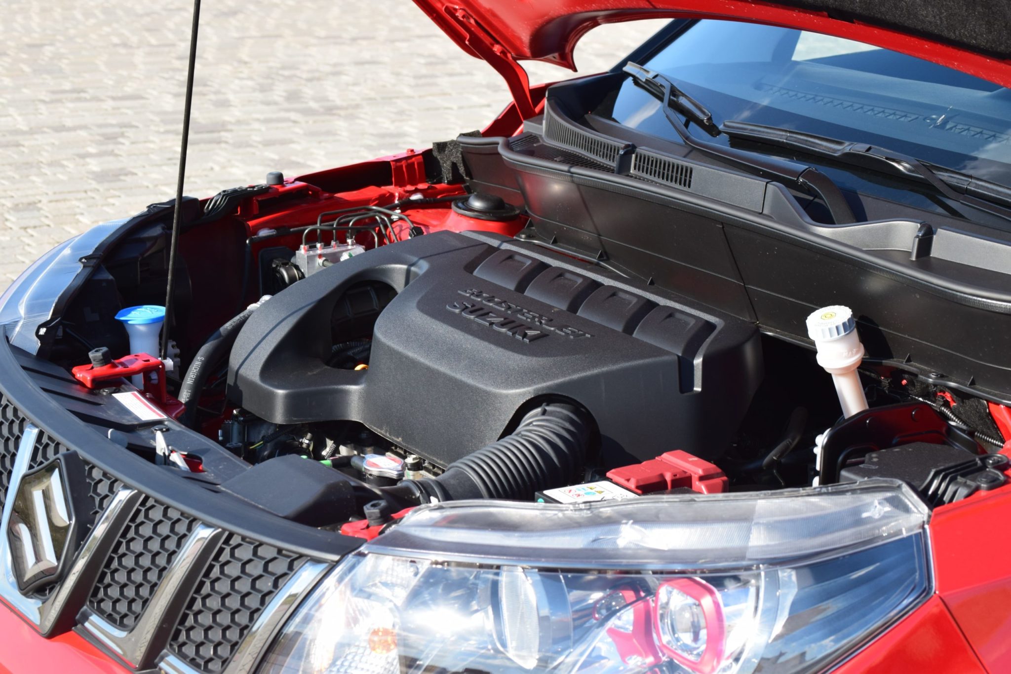 Mide 4,17 metros de largo por 1,77 metros de ancho por 1,61 metros de alto y se ofrece en tres acabados: 5 puertas, S y toro; con motores tanto de gasolina como diésel; con potencias comprendidas entre los 120 y los 140cv para las versiones gasolina y los 120 CV para las versiones diésel. El Suzuki Vitara se puede elegir en 8 colores de carrocería, siendo el de nuestra unidad el Rojo Bright combinado con un techo en negro perlado metalizado cósmico.