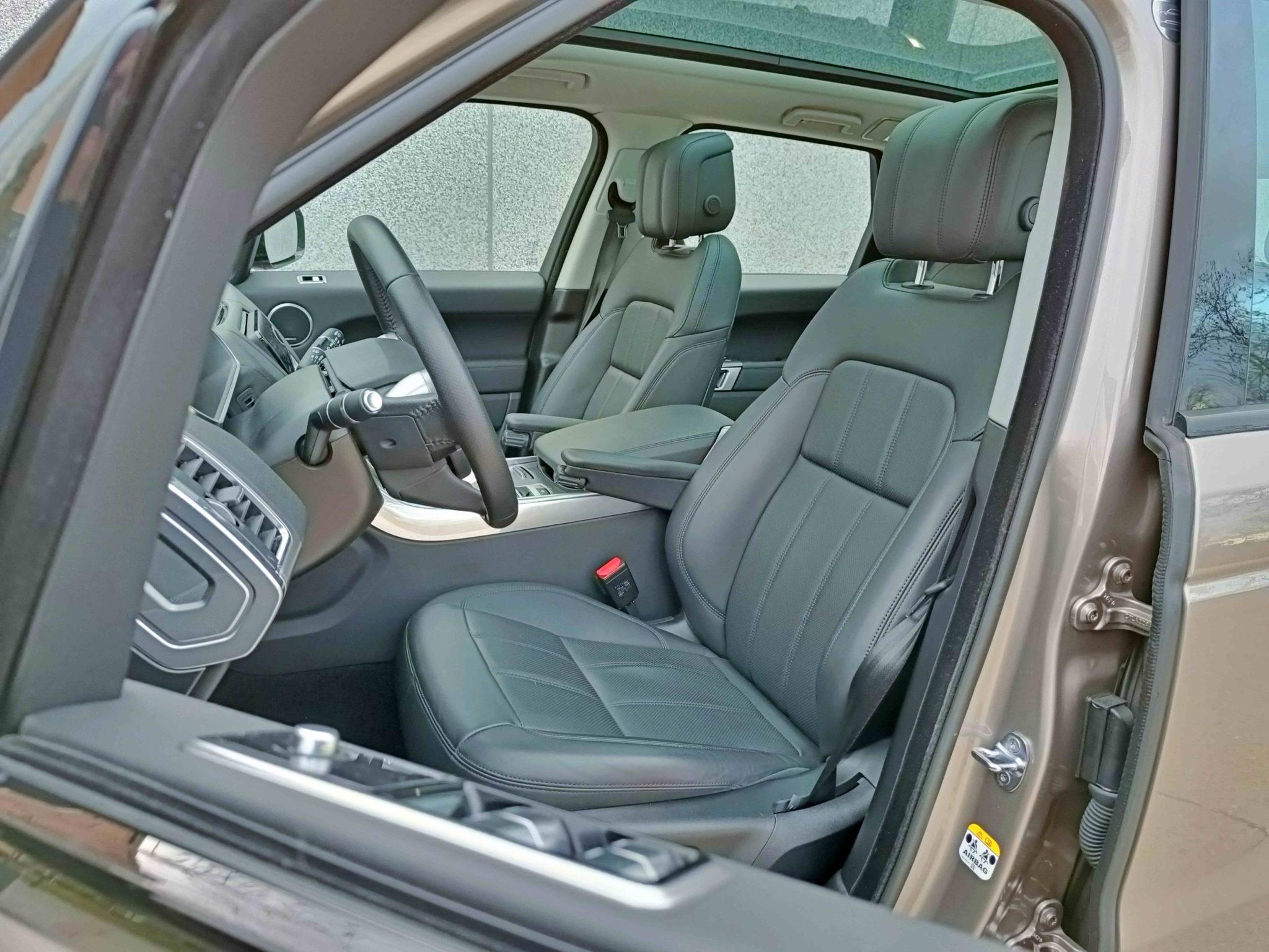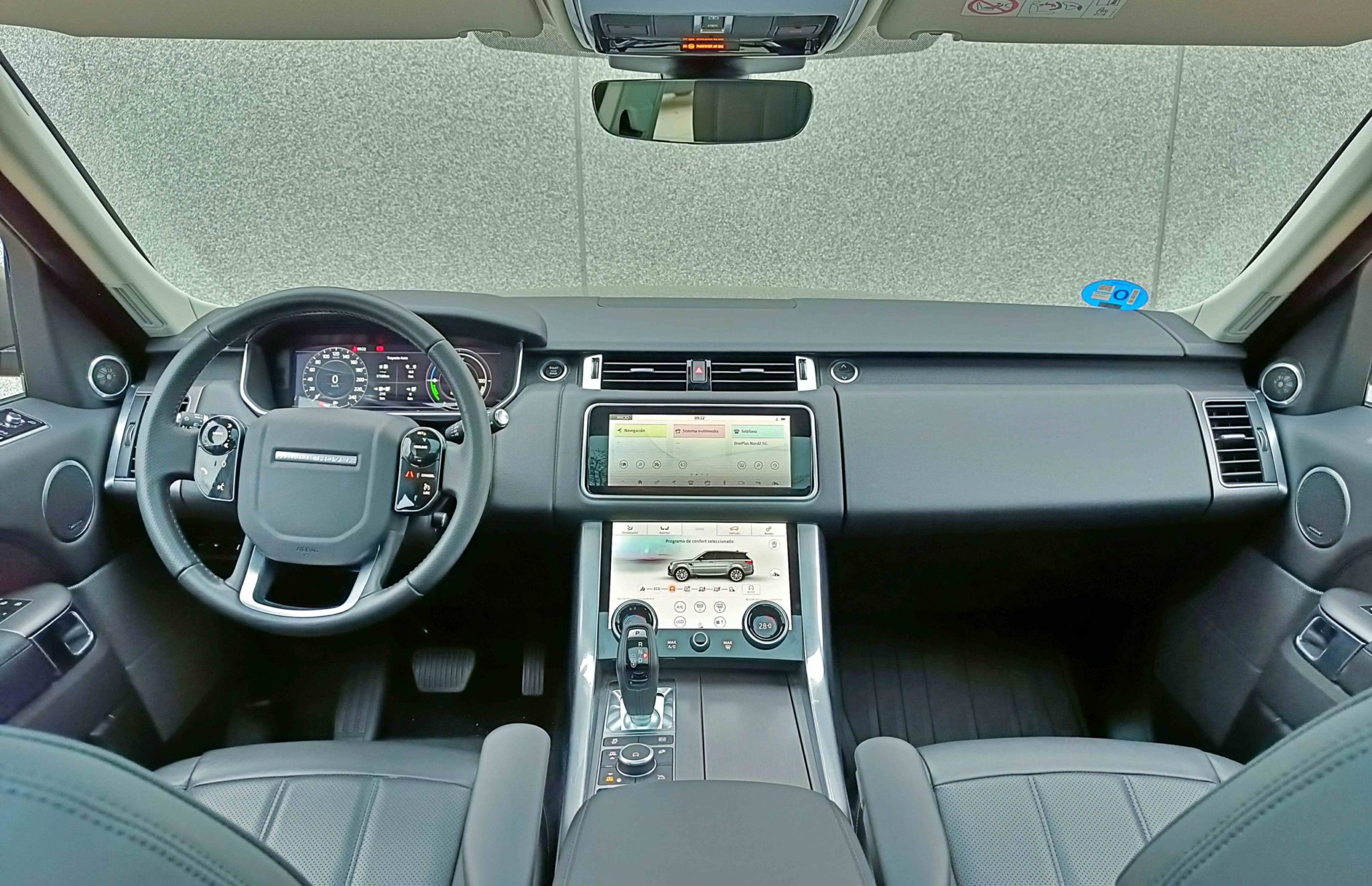 Estéticamente, este Range Rover Sport tiene una estética muy original y propia, y es que, aún manteniendo el diseño de sus hermanos el Evoque y el Velar, se nota que estas ante un Sport cuando lo ves delante. Su frontal es alto y robusto, con faros alargados que se unen con la parrilla. En ella está integrada la entrada de carga. En su zona inferior encontramos entradas de aire. En el lateral, destacan sus formas cuadradas, con llantas de 20″ y neumáticos Pirelli Scorpion. En la trasera, apreciamos el alerón, faros con un tamaño contenido, y un difusor trasero en negro piano y gris, aportando un toque más campero.