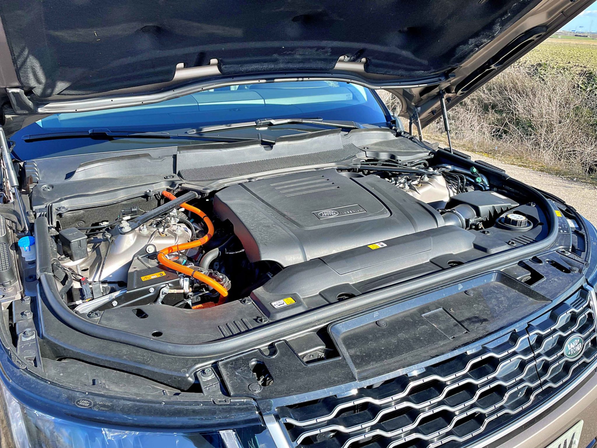 Mide 4’88 metros de largo, 1’98 de ancho y 1’80 de alto. Pesa más de 2.500kg y su batalla es de 2’92 metros. Su depósito de gasolina es de 91L y la capacidad de su batería, de 13,1kWh. Se ofrece en varios acabados, siendo el HSE el de nuestra unidad, y en cuanto a propulsiones, este modelo dispone de diversas motorizaciones con etiquetas C, ECO y 0. Las versiones gasolina serán de 300, 400, 525 o 575cv, pudiendo ser estos motores de 4, 6 u 8 cilindros. Las versiones diésel son de 250, 300 o 350cv, siendo el motor un 6 cilindros en linea. Los motores gasolina y diésel de 6 cilindros integran hibridación ligera, por lo que tienen etiqueta ECO, y por último compone la gama la versión híbrida enchufable, formada por el motor gasolina de 4 cilindros y 300cv y un motor eléctrico de 116cv. La batería es de iones de litio (13,1kWh), y en total, esta propulsión alcanza 404cv y 640nm de par. Todas las propulsiones están unidas a un cambio automático de tipo convertidor de par y 8 relaciones, y la tracción será siempre total.