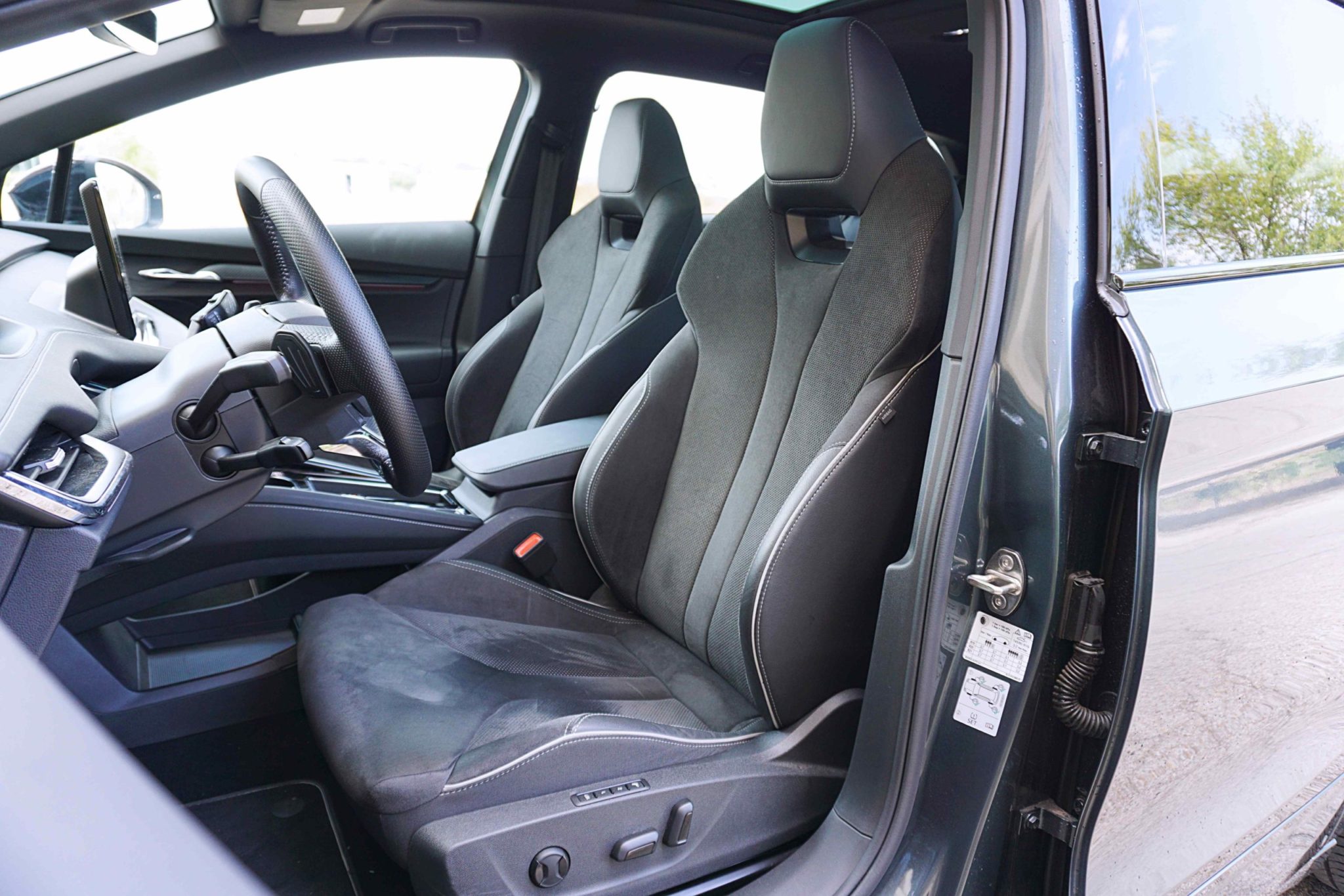 En su interior encontramos un habitáculo muy amplio y tecnológico, con una pantalla de 13″ con conectividad plena, navegación, todo tipo de reglajes del vehículo, clima, cámaras 360º… Impecable en funcionalidad, mejorable en fluidez al arrancar el vehículo, ya que al principio es un poco torpe. El cuadro de instrumentos es una pequeña pantalla de 5″ que ya conocemos de otros modelos del grupo Volkswagen como el ID3 o ID4. Los asientos son muy cómodos, con reglajes eléctricos, memoria y masaje. Ofrecen calefacción, y es muy fácil de conseguir una postura de conducción correcta para todo tipo de conductor. Como extras destacables, tenemos techo panorámico practicable, bomba de calor (ahora hasta 4kWh/100km).