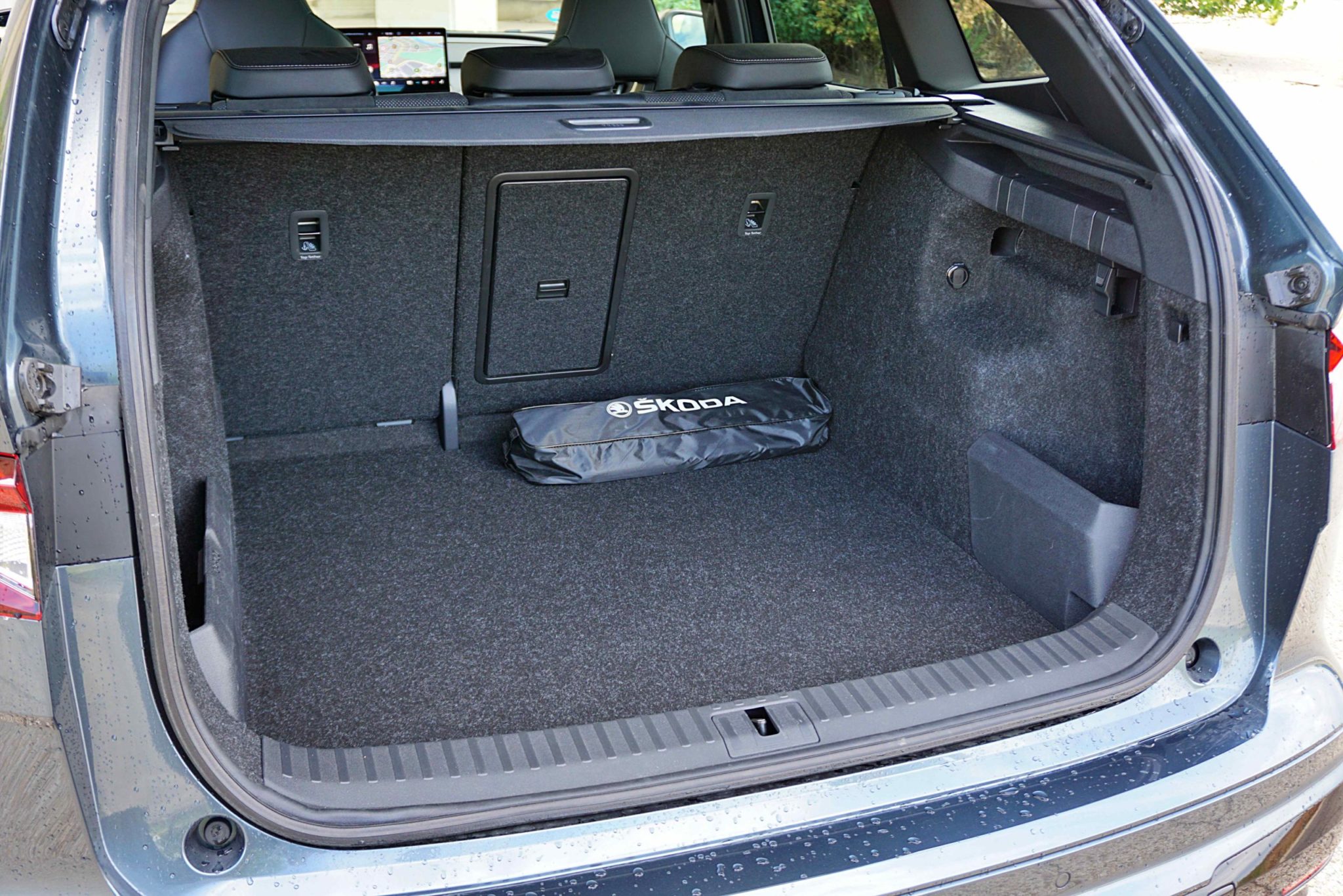 En marcha, sorprende la gran agilidad con la que se mueve este Enyaq. Pesa 2.200kg y gracias a la puesta a punto y potencia que despliega, parece que pese la mitad. Sus 265cv y 425nm de par instantáneos logran alcanzar el 0-100 en tan solo 6.9 segundos, un dato muy interesante que nos hace ver la gran fuerza y contundencia que tiene este SUV eléctrico. Tiene dos motores eléctricos, uno en cada eje, para que sea un coche con tracción a as 4 ruedas, aunque en la práctica no se nota. El consumo que hemos obtenido en la prueba ha sido de 16-17kWh/100km, una cifra razonable teniendo en cuenta la potencia y el peso. En ciudad podremos obtener un consumo inferior, bajando hasta los 13kWh, mientras que en autopista a 120kmh no es de extrañar que alcancemos los 20kWh (o los sobrepasemos si vamos con mucha carga o utilizando el aire acondicionado).
