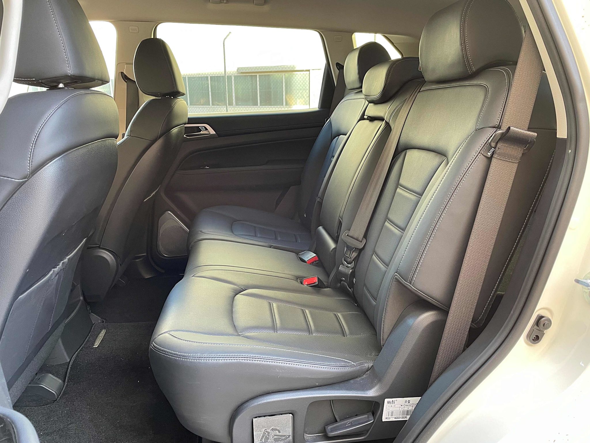 Las plazas traseras son muy espaciosas y perfectas para 2 ocupantes, mientras que la plaza central es más estrecha y con una banqueta excesivamente blanda. Encontramos salidas de aire y tomas de 12V. Este Rexton es de 7 plazas, y por ello tenemos otra fila de asientos extra, aunque son plazas pequeñas y bajas, por lo que quedarán reservadas para personas de estatura baja.