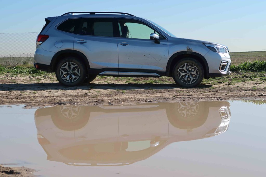 Este Forester Ecohybrid continúa con el legado 4×4 de los modelos Subaru. Su tracción integral Symmetrical AWD realiza un gran trabajo fuera de asfalto, el cual es penalizado por los neumáticos y por su ángulo de entrada, de 20 grados. Salvando estos dos detalles, es un vehículo muy apto para salidas camperas, gracias a sus 22cm y al sistema X-Mode, que nos dará un plus en seguridad y en habilidad en esos terrenos más complicados que nos pondrán a prueba tanto al conductor como al coche. El ángulo ventral es de 21 grados, y el de salida de 26, por lo que una vez hayamos sorteado el obstáculo de frente, no habrá problema en continuar.