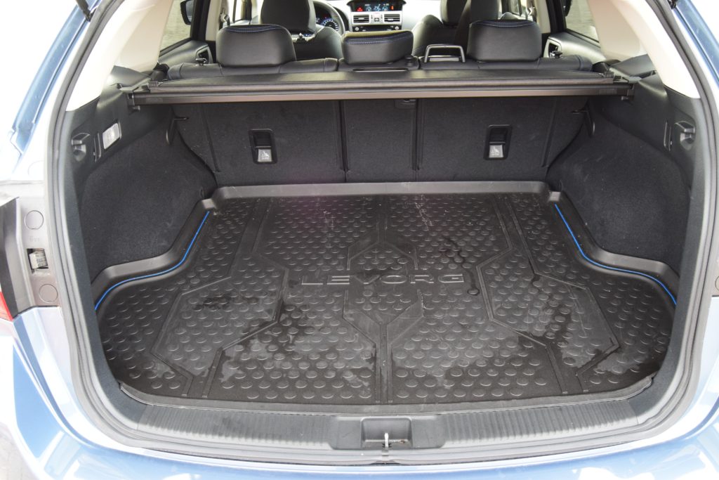 En el interior del Levorg se respira deportividad y comodidad. El punto fuerte de este Levorg es su maletero, con una capacidad de nada más y nada menos que 522 litros. La apertura del portón es manual y la boca de carga es muy ergonómica gracias a que es .muy bajita y está enrasada con el piso del maletero. Si queremos ampliar la capacidad del maletero, solo tendremos que tirar de dos botones que encontramos en el maletero para abatir los asientos en una disposición 40/60, y llegar hasta los 1446 litros totales. El accesorio de plástico especifico de este modelo (y que sirve para no manchar la tapicería) podemos pedirlo en nuestro concesionario Subaru a la hora de comprar nuestro Levorg.
