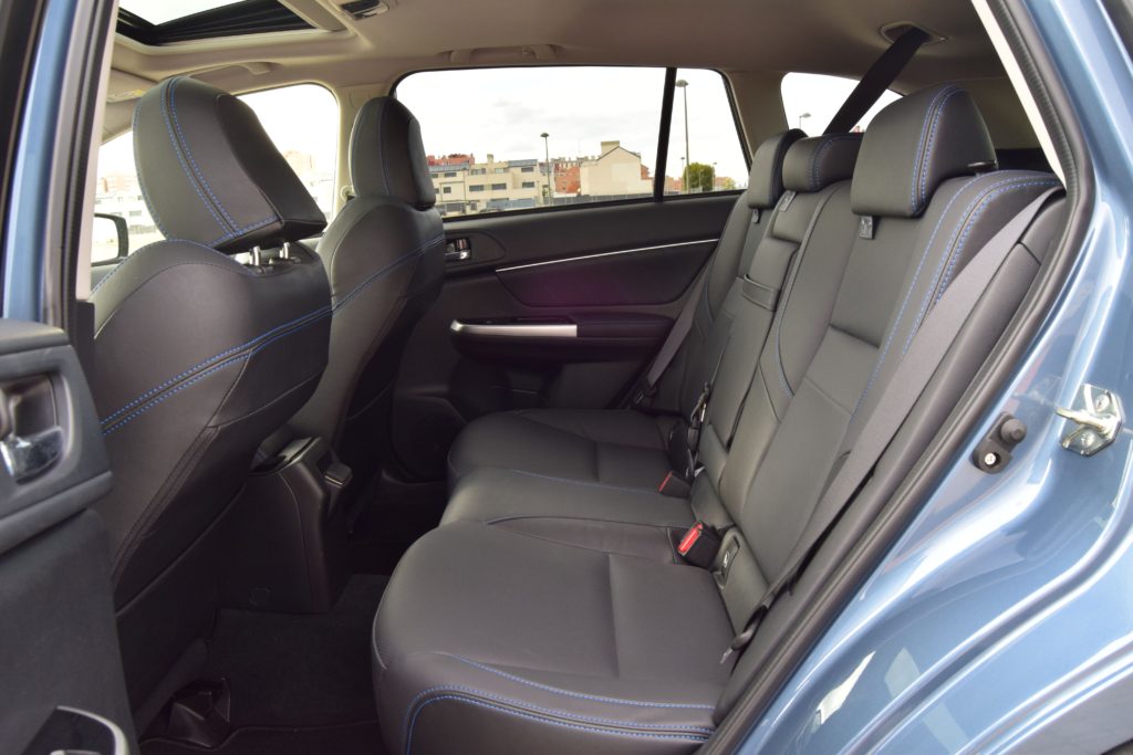 Las plazas traseras conservan la buena calidad de las delanteras, con una banqueta forrada en cuero con perforaciones en el interior de las plazas laterales. Ofrecen un buen espacio para piernas y para la cabeza (a no ser que midamos más de 1,85) existe también un correcto espacio. Ofrecen una confortabilidad muy buena a la plazas exteriores y encontramos detalles como dos salidas USB para cargar cualquier dispositivo móvil, un apoyabrazos con dos portabebidas, huecos en las puertas… Por lo que son unas plazas que no están nada mal. La plaza central le dejaremos para un niño o adulto para un trayecto corto debido a que es algo estrecha y a que el túnel central es muy abultado debido a la tracción Symmetrical All Wheel Drive.