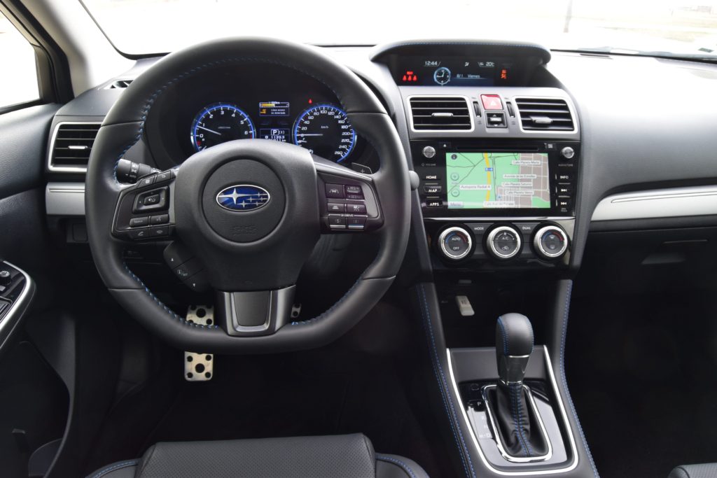 El salpicadero combina muy bien el cuero con la goma acolchada en su parte superior y el diseño es convencional, sin nada que resalte a nuestros ojos, aunque para mi lo convencional siempre es lo mejor. Destacan dos pantallas en el centro del salpicadero, una en la parte superior en la que podremos ver parámetros de vehículo y la de abajo que se trata del sistema multimedia Subaru Starlink en el que incluye mapas y conectividad tanto con Android como con Apple. La pantalla es de 5,9 pulgadas y notamos que la interfaz está algo anticuada y que la pantalla va algo lenta, pero la función la realiza correctamente.