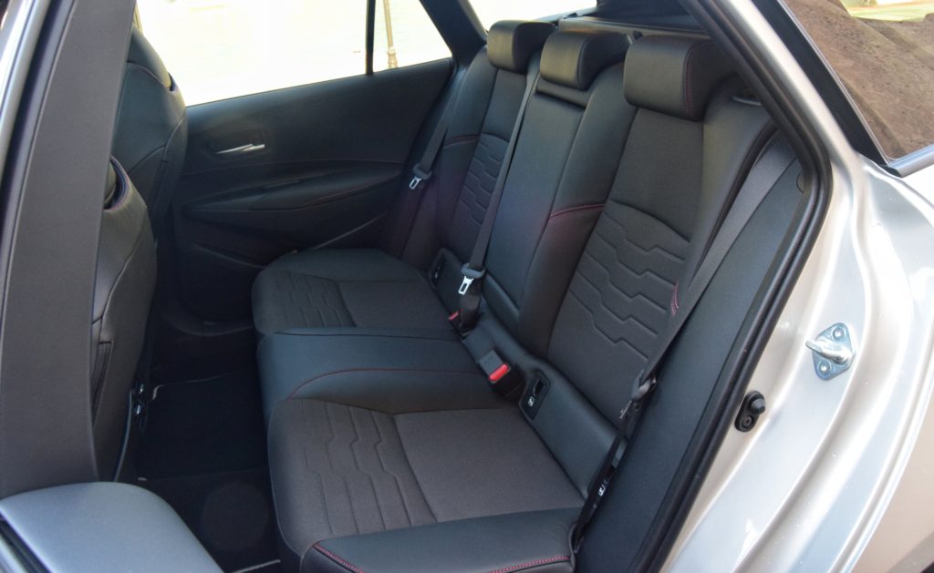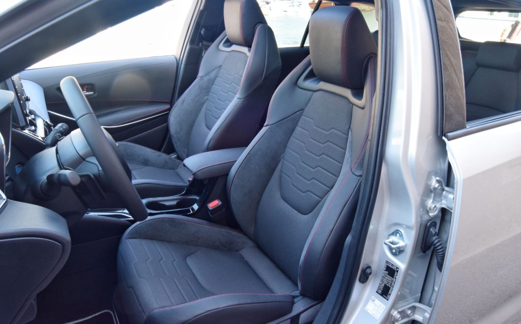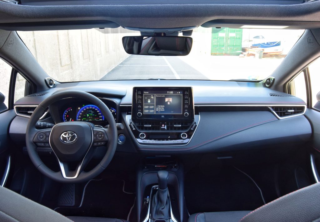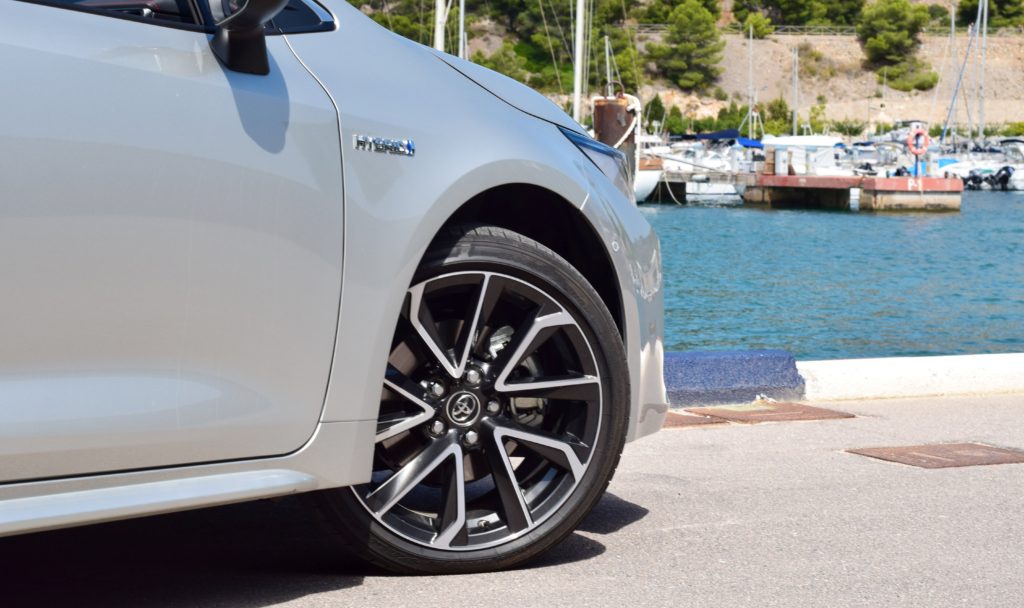 Dinámicamente se comporta genial gracias a unas suspensiones firmes y estables, pero cómodas y de un espléndido filtrado cuando pasmaos por baches o resaltos. La dureza de la dirección varía según el modo de conducción activado (Eco, Normal y Sport) y los frenos logran parar perfectamente los 1440kg que pesa este Corolla y en caso de ir con bastante más peso, como ocurre en viajes y trayectos largos, también logra una detención segura y rápida. En cuanto ayudas a la conducción encontramos aviso de ángulo muerto, aviso de cambio involuntario de carril con guiado en el carril, reconocimiento de señales, , sensores de aparcamiento y cámara de visión trasera y aparcamiento asistido, entre otros.