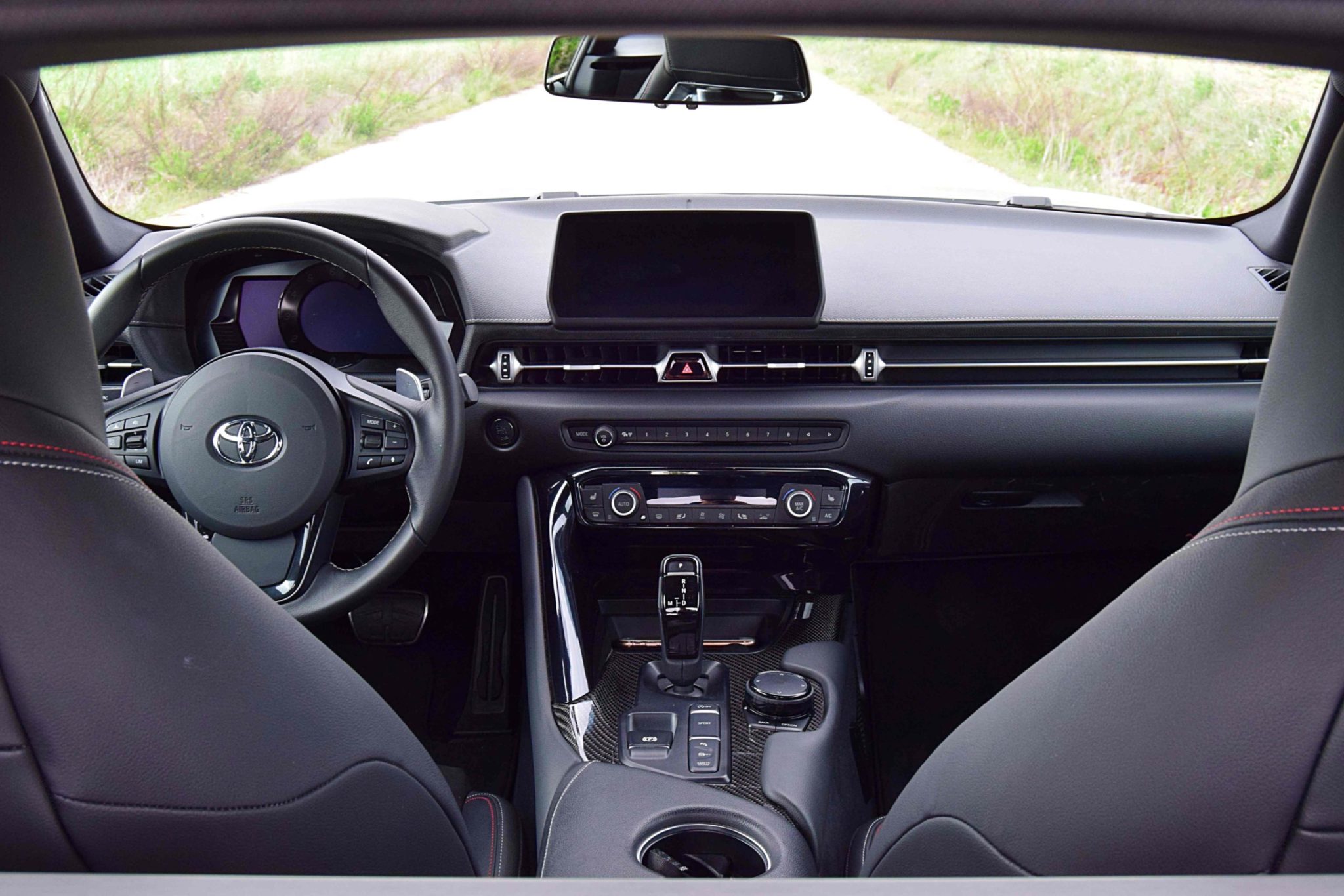 En el interior se notan los aires alemanes de BMW en su elaboración. Los materiales empleados son muy buenos, con plásticos blandos y algún detalle que simula fibra de carbono en la consola central. El volante no tiene un aspecto extremadamente deportivo, y aunque su diametro y tacto son excelentes, se echa en falta algún emblema deportivo en él, como el logo de GR. El cuadro de instrumentos es de 8’8 pulgadas ocn un cuentarrevoluciones en el centro, muy deportivo. El sistema multimedia también es de 8’8 pulgadas, y su interfaz es muy completa y fluida, con navegación, conectividad plena y todo tipo de reglajes del vehículo, incluso deportivos, además de incluir la cámara de visión trasera y sensores.