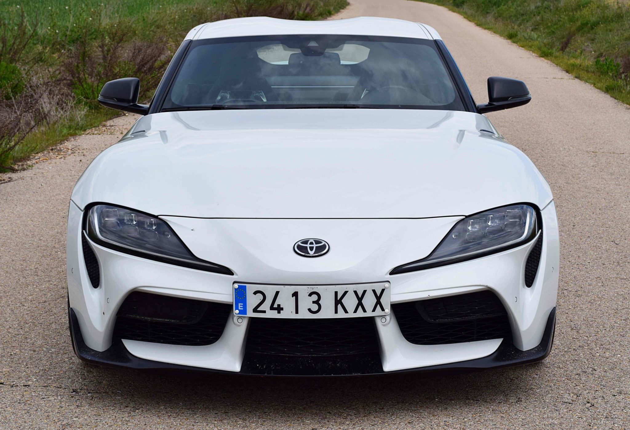 En cuanto a su estética, las líneas dinámicas y suaves son la característica del GR Supra, que gana agresividad en sus paragolpes delantero y trasero. En su frontal lo que más llama la atención es su enorme capó, larguísimo, seguido de unos faros afilados y unas entradas de aire en su zona inferior, junto con otras que son falsas y que cobran sentido en la versión de competición. El lateral destaca por unos marcados pasos de rueda que harán que las plazas de garaje se queden muy estrechas, con más entradas de aire falsas en la puerta, y unas taloneras negras en la zona inferior.