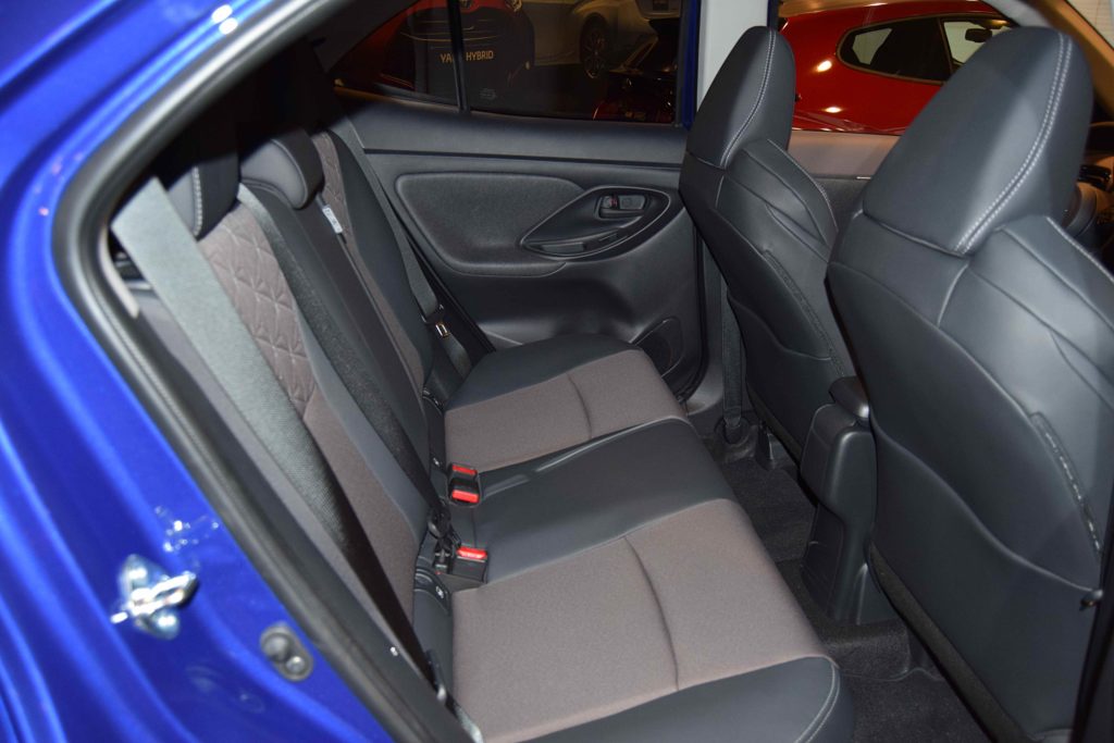 Mide 4’18M de largo, 1’76M de ancho y 1’56M de alto, lo que supone que crece respecto al Yaris unos 24cm en su longitud, 2 en su anchura y 9 en altura. La distancia entre ejes es de 2’56M y su altura libre al suelo, que se situa en 16’5cm, 3cm más que el Yaris convencional.