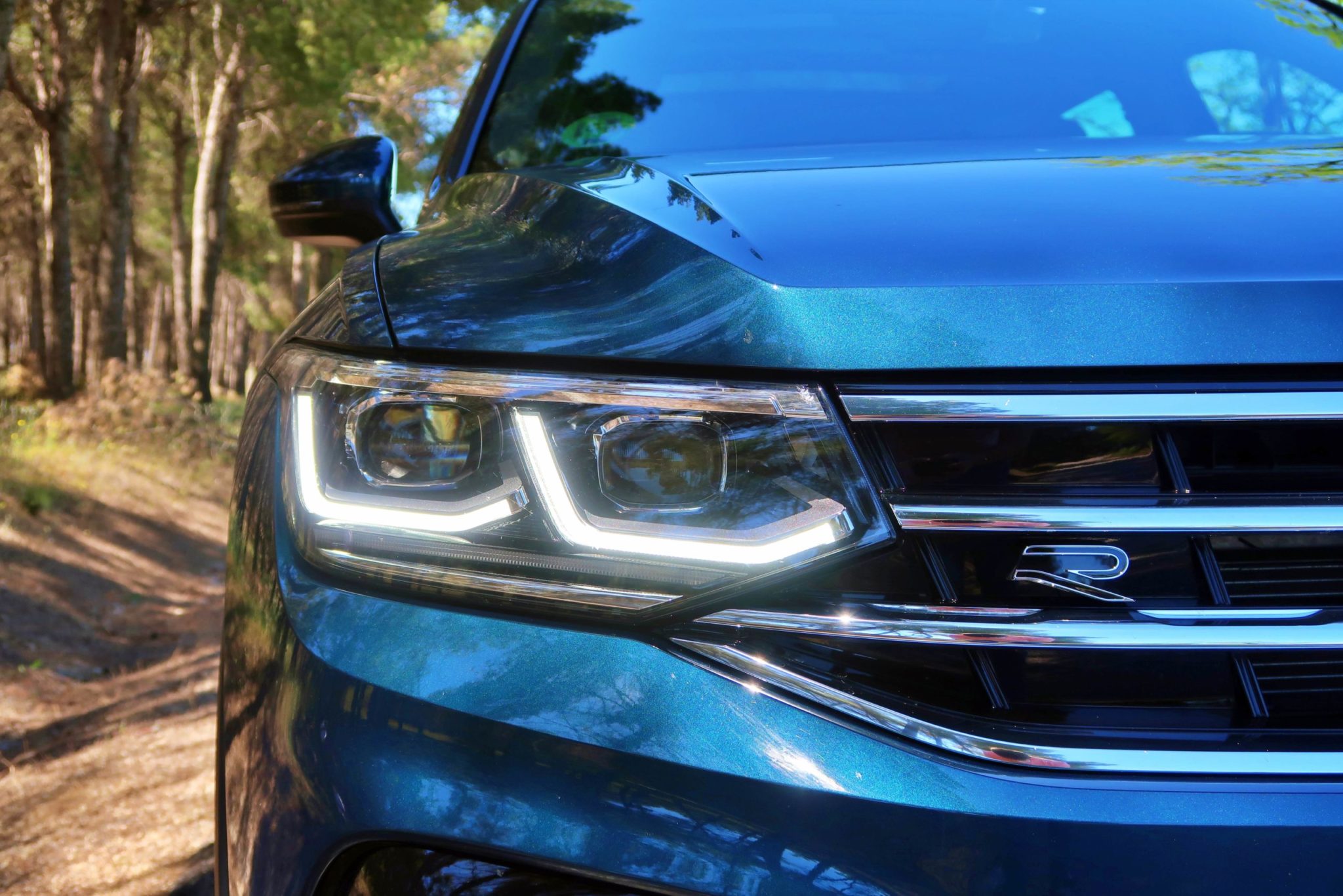 En el caso de nuestra unidad, encontramos las llantas de serie de 19” llamadas Valencia. Por último, la zaga quizá sea la zona menos apreciable en cuanto a cambios, pero encontramos unos nuevos pilotos traseros Full LED con intermitentes dinámicos en este acabado y un paragolpes actualizado, así como un nuevo diseño y ubicación de las denominaciones Tiguan y 4Motion. Podremos configurar nuestro Tiguan R- Line con hasta 6 colores, siendo el de nuestra unidad uno de los más bonitos y originales: el “Nightshade Blue metalizado”.