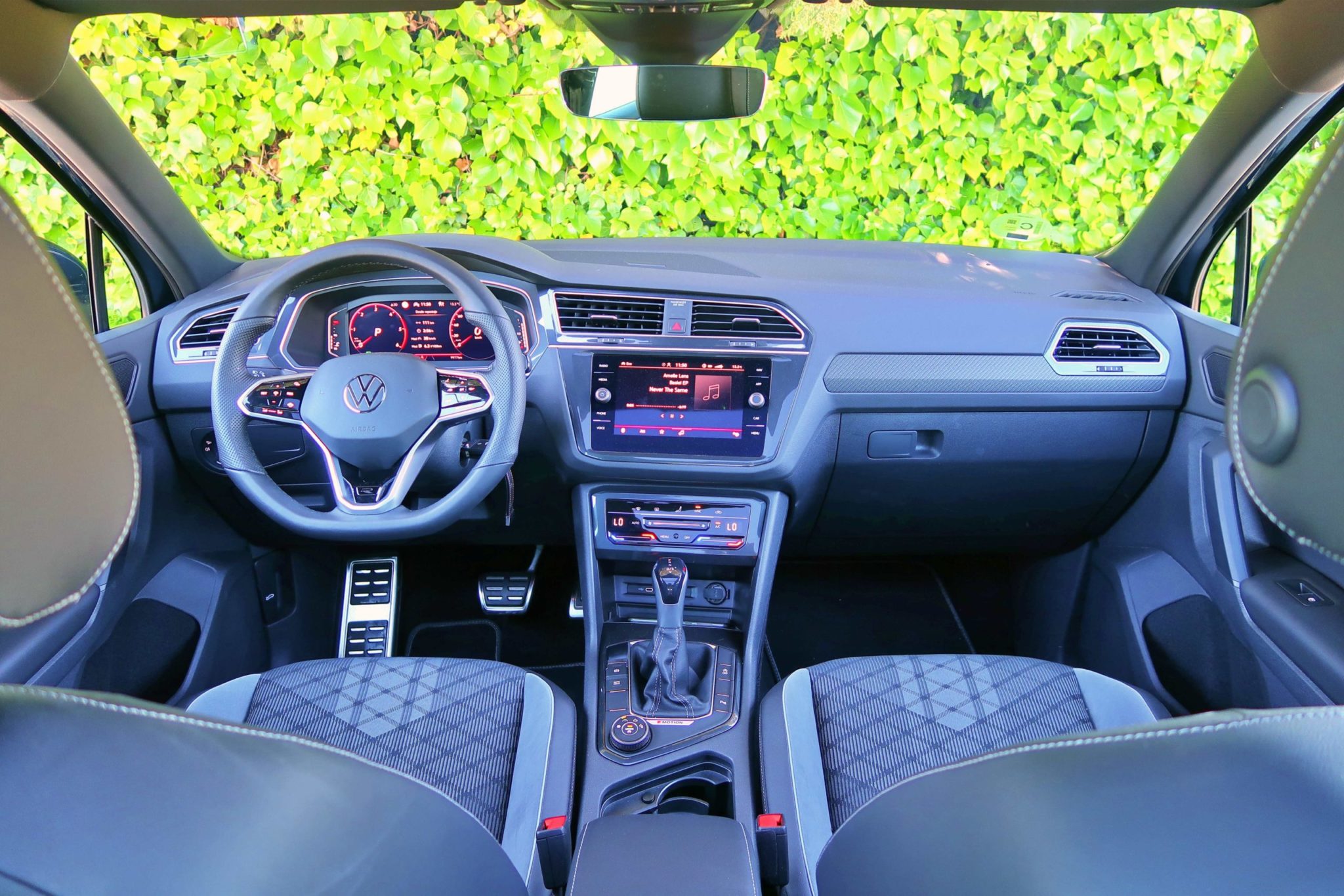 El interior del Tiguan es indudablemente de un Volkswagen, mostrando la distribucción clásica de la marca. La calidad de materiales es superior a la de sus hermanos TCross y TRoc, con buenos acolchados y ajustes, y con una gran distribucción de sus elementos. El puesto de conducción es cómodo, gracias a unos asientos con buen ajuste lumbar y de corte deportivo.El volante es de nueva factura, como el que podemos encontrar en el nuevo Golf. Los mandos integrados del volante son táctiles, por lo que hay que acostumbrarse un poco al principio a su uso.