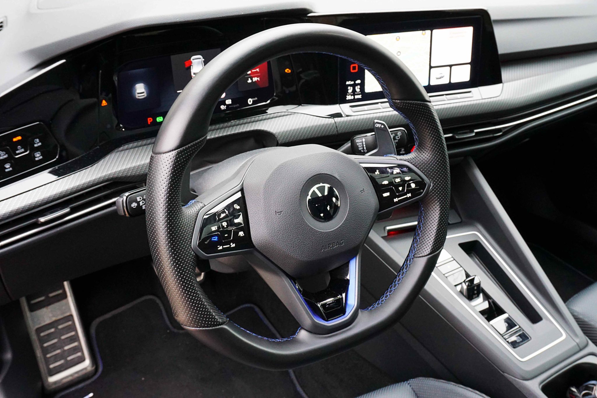 La dirección también varía en 3 intensidades de dureza, ajustando también la efectividad de la respuesta en el giro. Los frenos actúan contundentemente sobre los 1550kg que pesa esta unidad, 90kg más que el GTI Clubsport. En cuanto a las ayudas a la conducción, este Golf R no deja de ser el Golf tope de gama, por lo que integra todo lo disponible: aviso de ángulo muerto, control crucero adaptativo, aviso de cambio involuntario de carril con corrección, travel assist, aviso de precolisión con frenada de emergencia, cámara trasera con sensores… Os dejamos la lista de opciones que integra esta unidad: